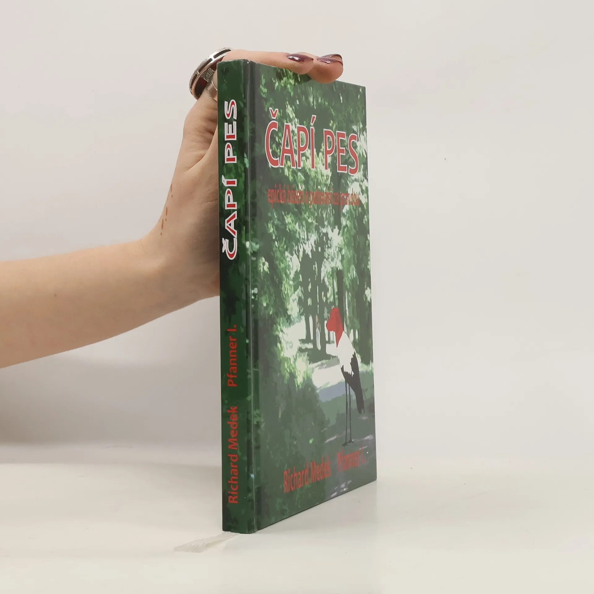 V hospodě „U kulatého sudu“ na Malé Straně pražské sedí dva muži našedlého vlasu, půllitry v rukou, klasický únik ze všedního života. Ten první toho druhého pozná a není náhoda, že si k němu přisedne. Chce ho zabít a ví proč. Ale po pár pivech oba zjistí, že mají cosi společného. Potřebu říci pravdu o světě, který žijí, cítí, každý z nich svým způsobem a možná taky společně. Prostřednictvím svých knih, které naloží na dvoukolák, zřeknou se všeho světského a vyrazí do světa šířit ideály. Hledat pravdu. V doprovodu Čápa i Psa. Čapího Psa. Báseň v próze dvou zkušených autorů, Richarda Medka a Pfannera I. překypuje obrazotvorností, silným příběhem, napětím i humorem. Až do svého pitoreskního nečekaného rozuzlení. Stojí za to se jejich příběhu poddat a vydat se na cestu s Čapím Psem.