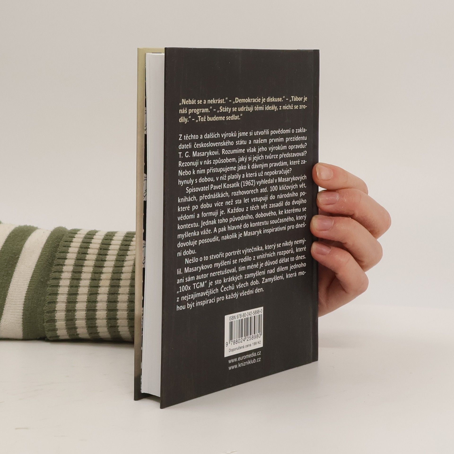 100 moudrých i vtipných, slavných i neznámých, ale vždy zajímavých výroků T. G. Masaryka, které mohou být užitečné a posloužit k zamyšlení i v současnosti. Malá čítanka Masarykových výroků s komentářem a výkladem, která TGM přibližuje dnešním čtenářům.