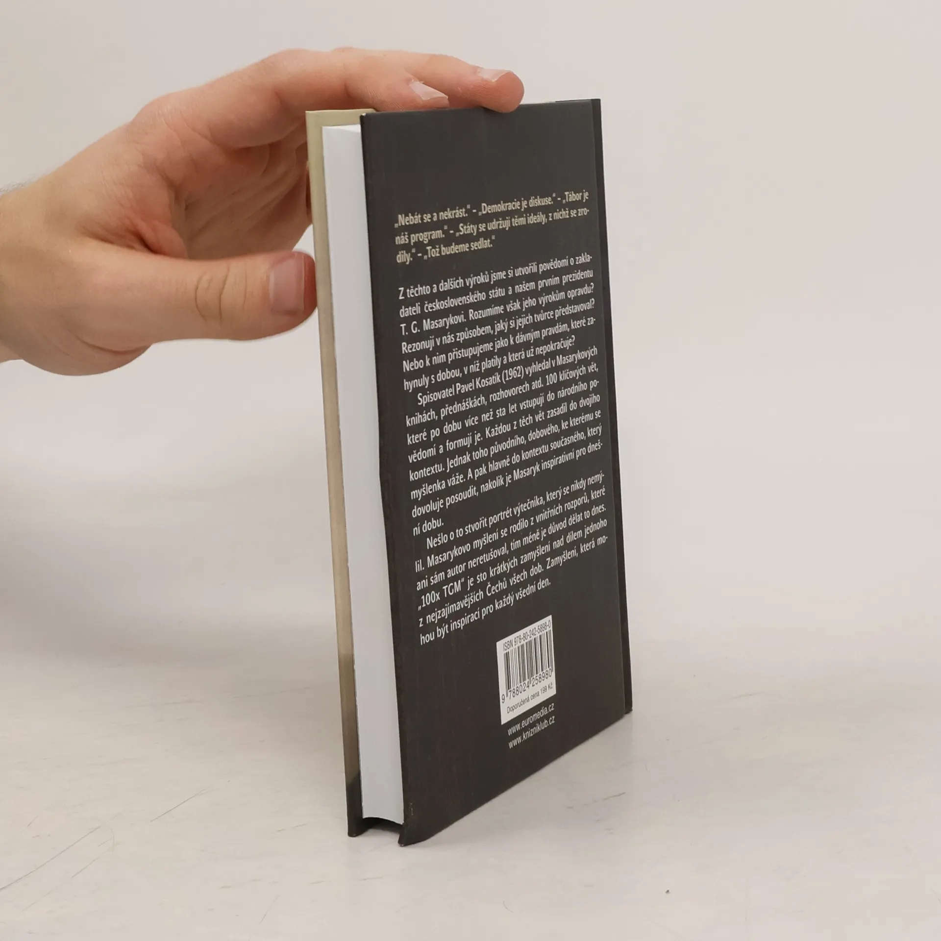 100 moudrých i vtipných, slavných i neznámých, ale vždy zajímavých výroků T. G. Masaryka, které mohou být užitečné a posloužit k zamyšlení i v současnosti. Malá čítanka Masarykových výroků s komentářem a výkladem, která TGM přibližuje dnešním čtenářům.