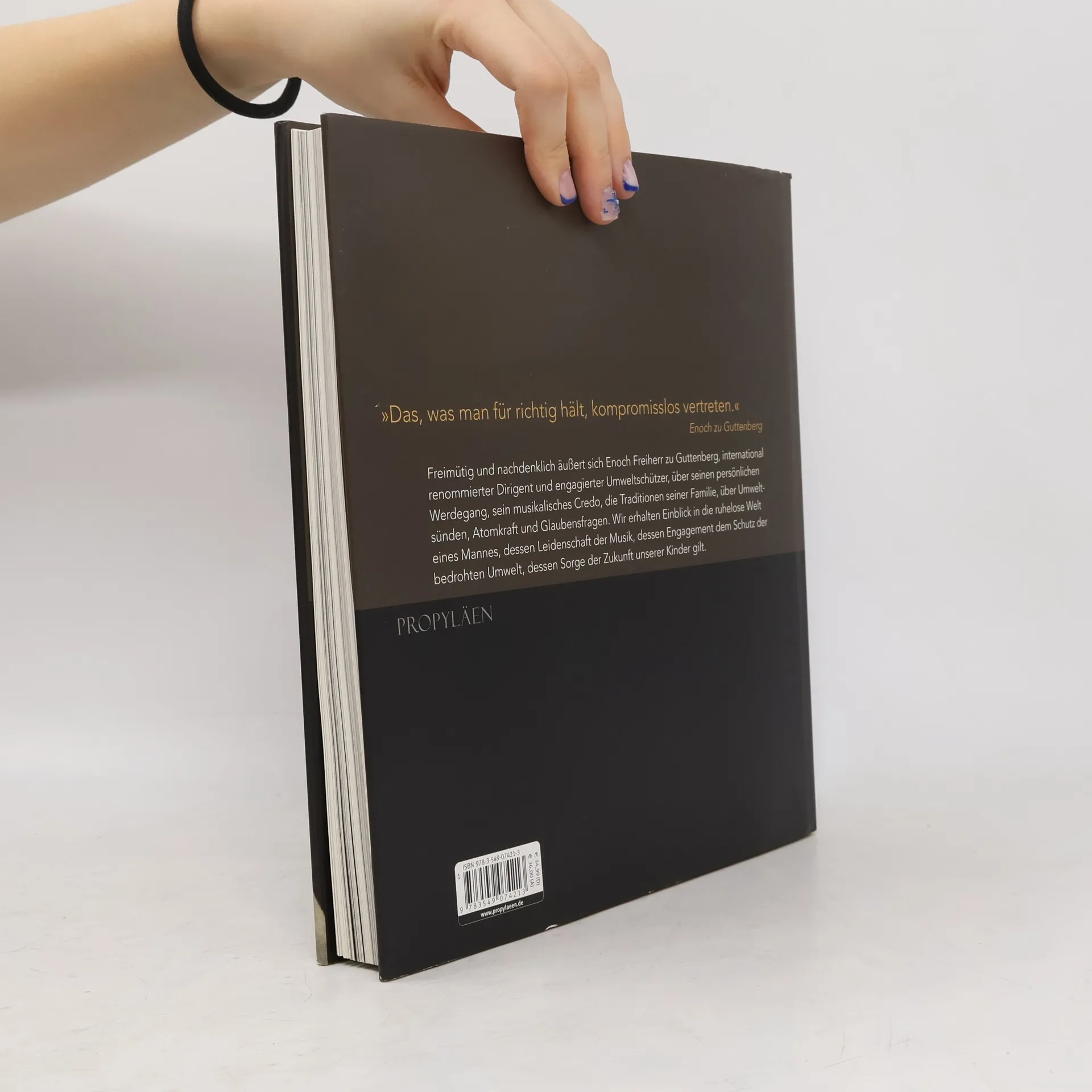 Er ist traditionsbewusster Schlossherr, international renommierter Dirigent, glühender Umweltschützer und Vater des zurückgetretenen Verteidigungsministers: Enoch zu Guttenberg ist ein vielseitiger Mann. In diesem Buch gibt der Spross eines alten fränkischen Adelsgeschlechts im Gespräch mit Constantin Magnis (Cicero) erstmals ausführlich Einblick in sein musikalisches Credo, sein umweltpolitisches Engagement, seine Weltanschauung und sein Leben. Eindrucksvolle, sehr persönliche Farb- und Schwarzweiß-Aufnahmen von Markus Hurek sowie unbekannte Fotos aus dem Familienarchiv runden den aufwändig gestalteten Band ab.
