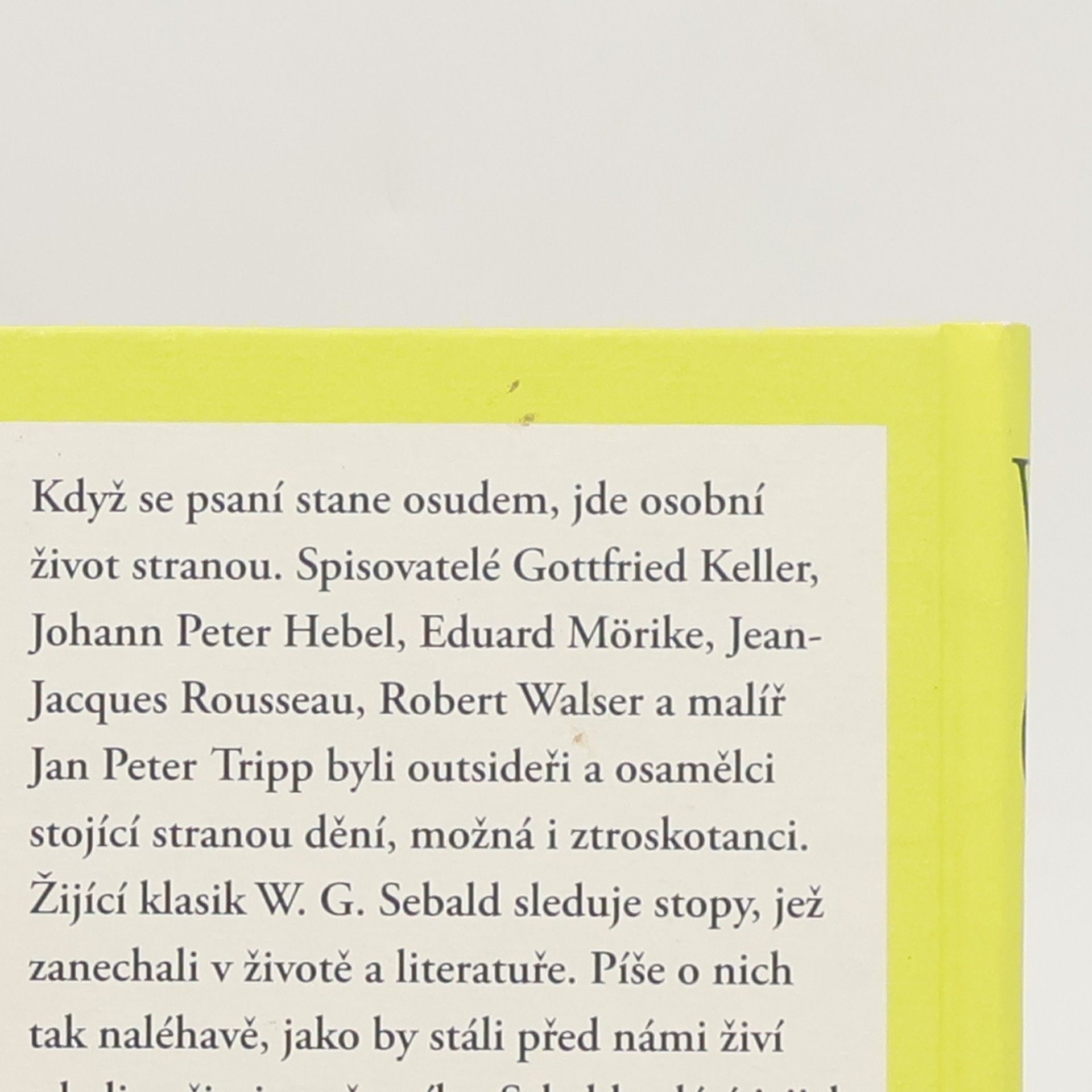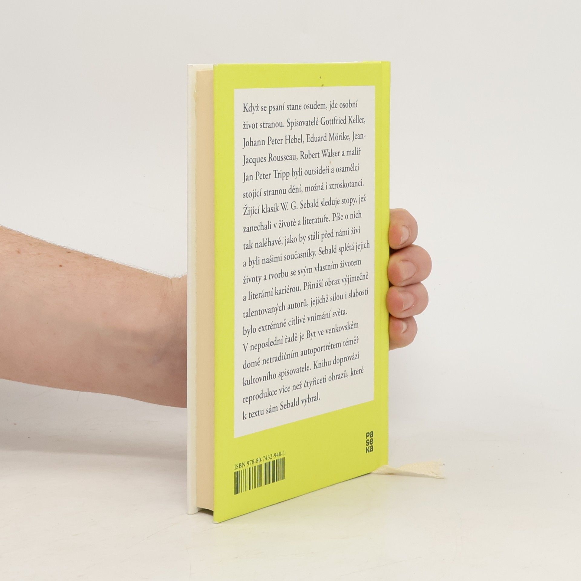 Když se psaní stane osudem, jde osobní život stranou. Spisovatelé Gottfried Keller, Johann Peter Hebel, Eduard Mörike, Jean-Jacques Rousseau, Robert Walser a malíř Jan Peter Tripp byli outsideři a osamělci stojící stranou dění, možná i ztroskotanci. Žijící klasik W. G. Sebald sleduje stopy, jež zanechali v životě a literatuře. Píše o nich tak naléhavě, jako by stáli před námi živí a byli našimi současníky. Sebald splétá jejích osudy a tvorbu se svým vlastním životem a bohatou kariérou. Přináší obraz výjimečně talentovaných autorů, jejichž prokletím byla křehká povaha. V neposlední řadě je Byt ve venkovském domě netradičním autoportrétem téměř kultovního spisovatele. Knihu doprovází reprodukce více než čtyřiceti obrazů, které k textu sám Sebald vybral.
