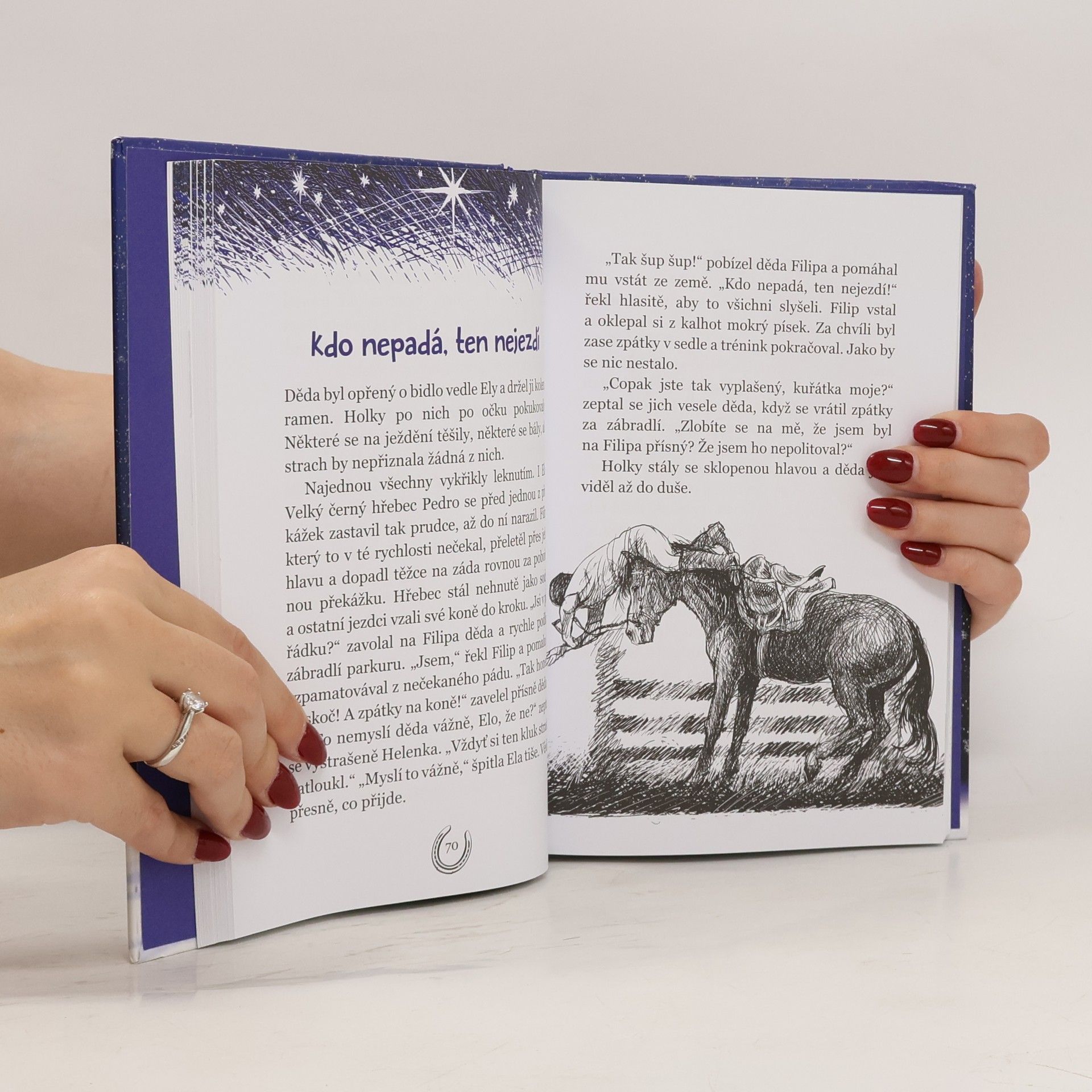 Ela miluje koně nade všechno. Hodně o nich ví, a kdyby mohla, byla by ve stájích od rána do večera. Jenže tohle holky z její třídy vůbec nechápou. Ela jim připadá nudná a obyčejná. To už se ale brzy změní. Stačí, aby se o Vánocích narodilo malé hříbátko s hvězdičkou na čele, a rázem se Ele i holkám obrátí život vzhůru nohama. Holky objeví kouzlo koňského světa a lépe poznají i Elu samotnou. Jezdecký oddíl Hvězdičky pak jejich přátelství jenom utvrdí.