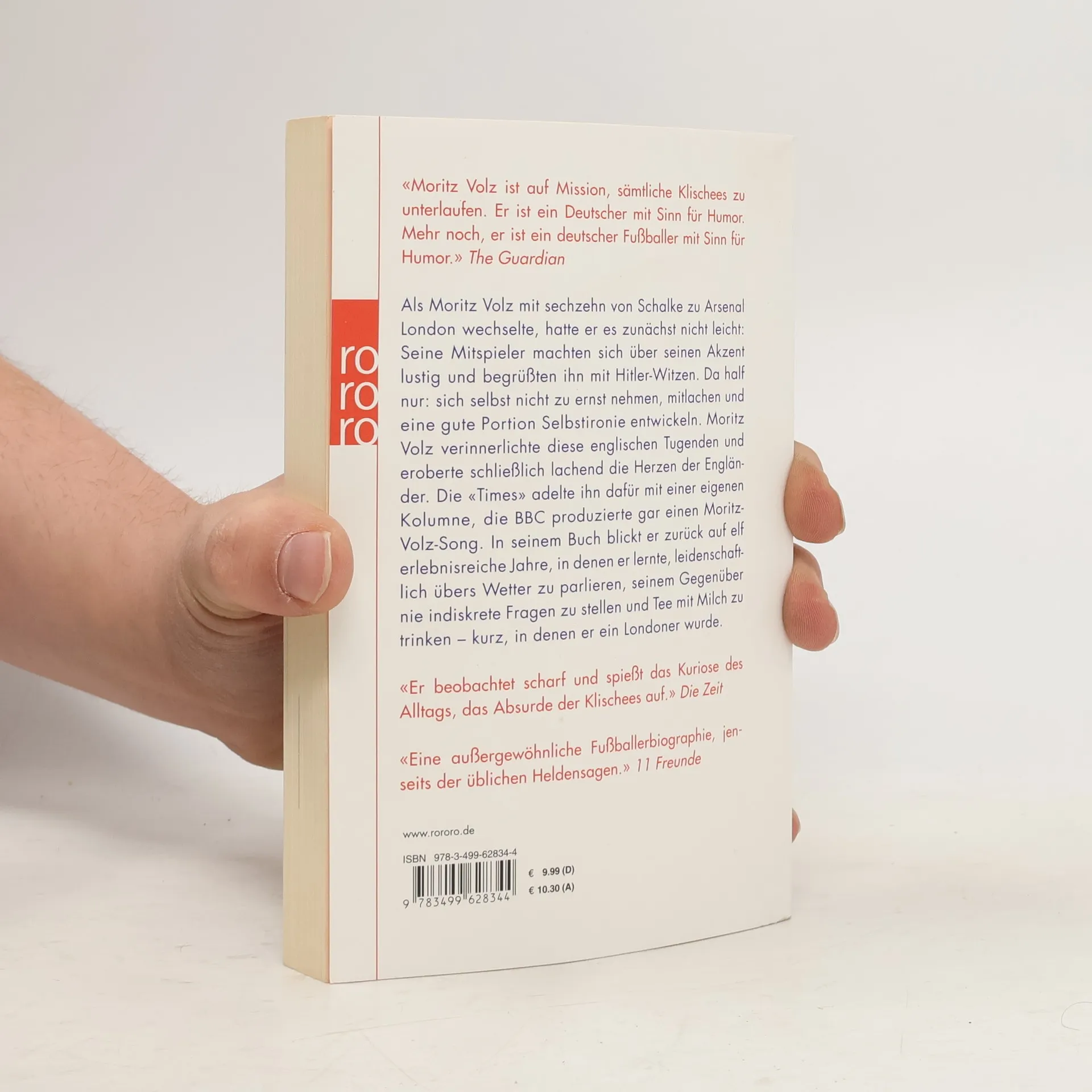 «Moritz Volz ist auf Mission, sämtliche Klischees zu unterlaufen. Er ist ein Deutscher mit Sinn für Humor. Mehr noch, er ist ein deutscher Fußballer mit Sinn für Humor.» The Guardian Als Moritz Volz mit sechzehn von Schalke zu Arsenal London wechselte, hatte er es zunächst nicht leicht: Seine Mitspieler machten sich über seinen Akzent lustig und begrüßten ihn mit Hitler-Witzen. Da half nur: sich selbst nicht zu ernst nehmen, mitlachen und eine gute Portion Selbstironie entwickeln. Moritz Volz verinnerlichte diese englischen Tugenden und eroberte schließlich lachend die Herzen der Engländer. Die «Times» adelte ihn dafür mit einer eigenen Kolumne, die BBC produzierte gar einen Moritz-Volz-Song. In seinem Buch blickt er zurück auf elf erlebnisreiche Jahre, in denen er lernte, leidenschaftlich übers Wetter zu parlieren, seinem Gegenüber nie indiskrete Fragen zu stellen und Tee mit Milch zu trinken – kurz, in denen er ein Londoner wurde. «Er beobachtet scharf und spießt das Kuriose des Alltags, das Absurde der Klischees auf.» Die Zeit «Eine außergewöhnliche Fußballerbiographie, jenseits der üblichen Heldensagen.» 11 Freunde