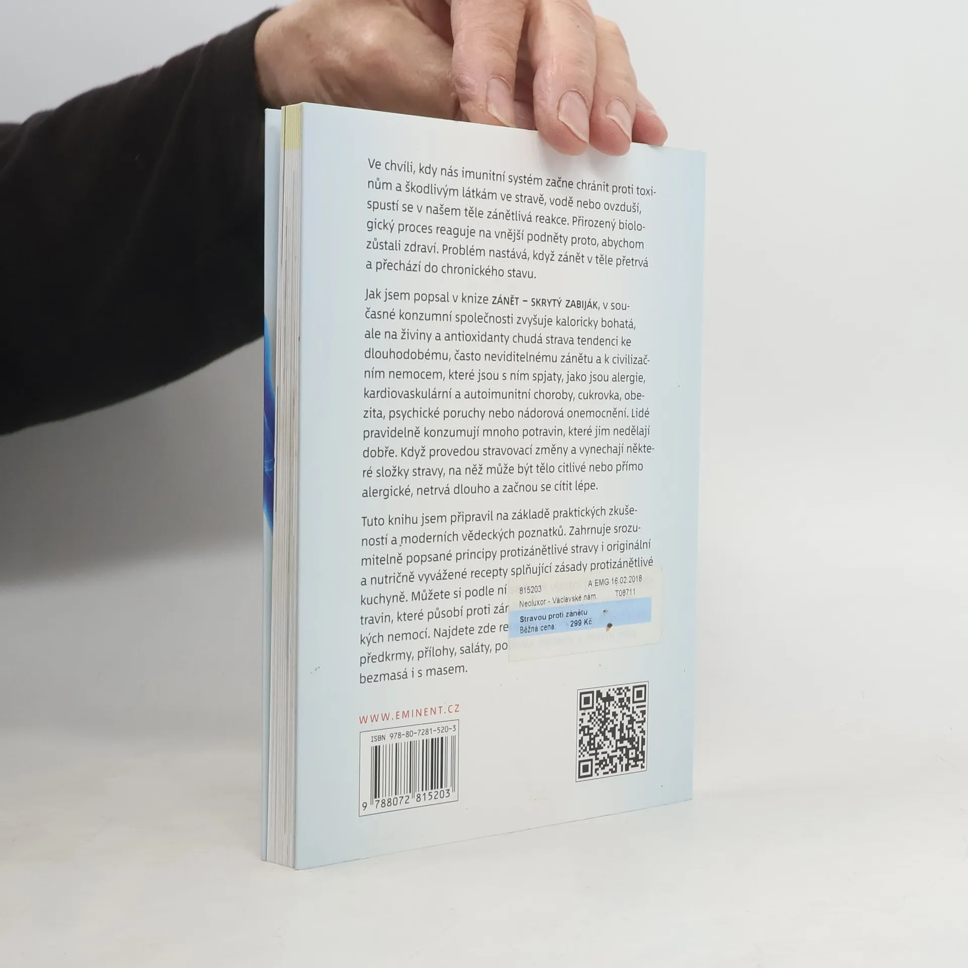 Ve chvíli, kdy nás imunitní systém začne chránit proti toxinům a škodlivým látkám ve stravě, vodě nebo ovzduší, spustí se v našem těle zánět. Jako přirozený biologický proces reaguje na vnější podněty proto, abychom zůstali zdraví. Problém nastává tehdy, když v těle přetrvává a přechází do chronického stavu. Jak autor popsal ve své knize Zánět - skrytý zabiják, zvyšuje kaloricky bohatá, na živiny a antioxidanty chudá strava v současné konzumní společnosti tendenci k dlouhodobému a často neviditelnému zánětu a s ním spojených civilizačních nemocí, jako jsou alergie, autoimunitní nemoci, cukrovka, obezita, srdečněcévní nemoci, psychické poruchy nebo nádorová onemocnění. Lidé pravidelně konzumují mnoho potravin, které jim nedělají dobře. Po provedení stravovacích změn a vynechání některých druhů, na které může tělo být citlivé nebo přímo alergické, zpravidla netrvá dlouho a začnou se cítit lépe. Tuto knihu jsem autor připravoval na základě praktických zkušeností a moderních vědeckých poznatků. Zahrnuje srozumitelně popsané principy protizánětlivé stravy i originální a nutričně vyvážené recepty splňující zásady protizánětlivé stravy. Je návodem, který vám pomůže sestavit si vlastní jídelníček z potravin, které působí protizánětlivě a snižují riziko chronických nemocí. Najdete zde recepty pro všechny příležitosti, předkrmy, přílohy, saláty, polévky, hlavní jídla bezmasá i s masem a dezerty.