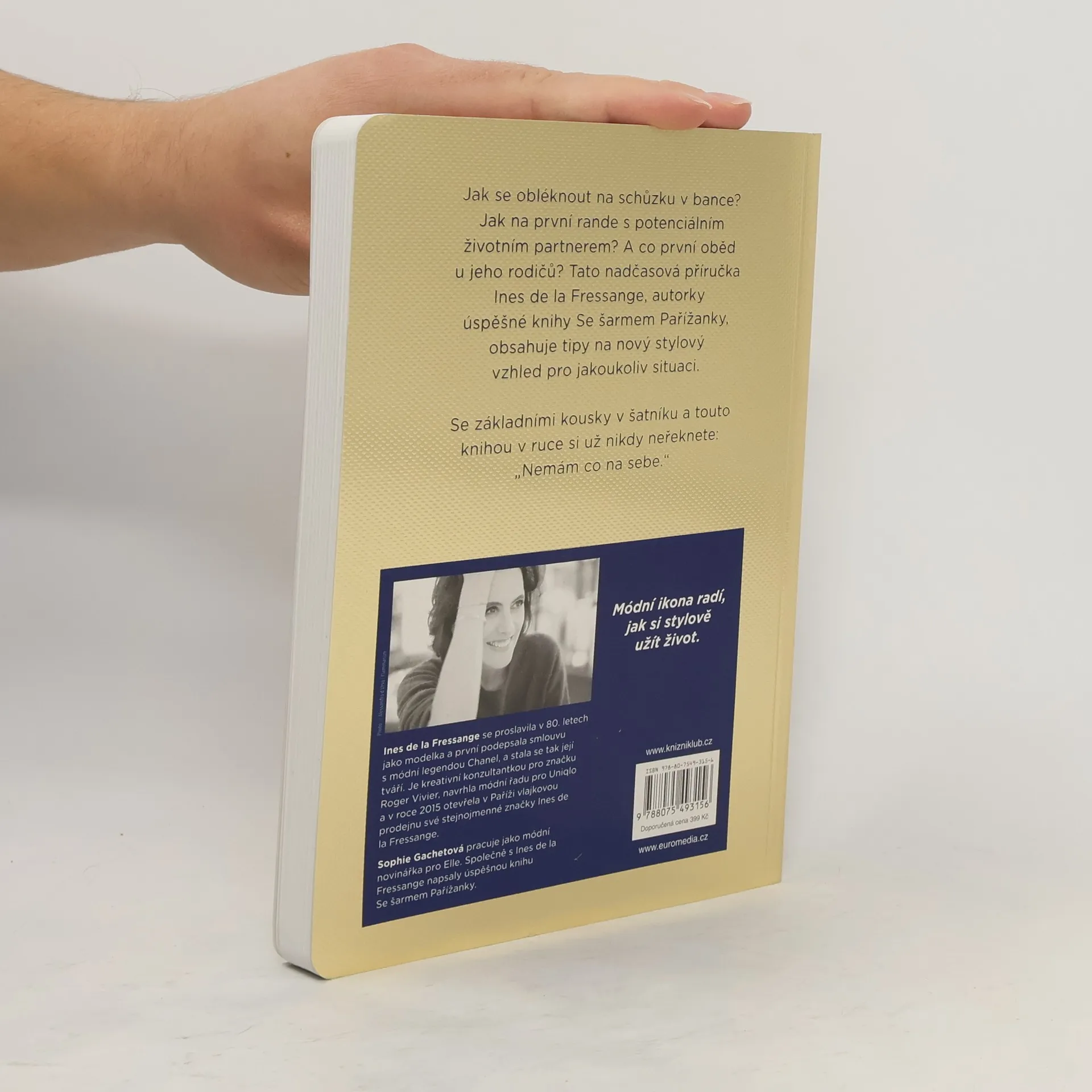 Jak se obléknout na schůzku v bance? Jak na první rande s potenciálním partnerem? A co první oběd u jeho rodičů? Tato příručka Ines de la Fressange, autorky veleúspěšné knihy Se šarmem Pařížanky, obsahuje tipy na nový stylový vzhled pro jakoukoliv situaci. Se základními kousky v šatníku a touto knihou v ruce si už nikdy neřeknete: „Nemám co na sebe.“