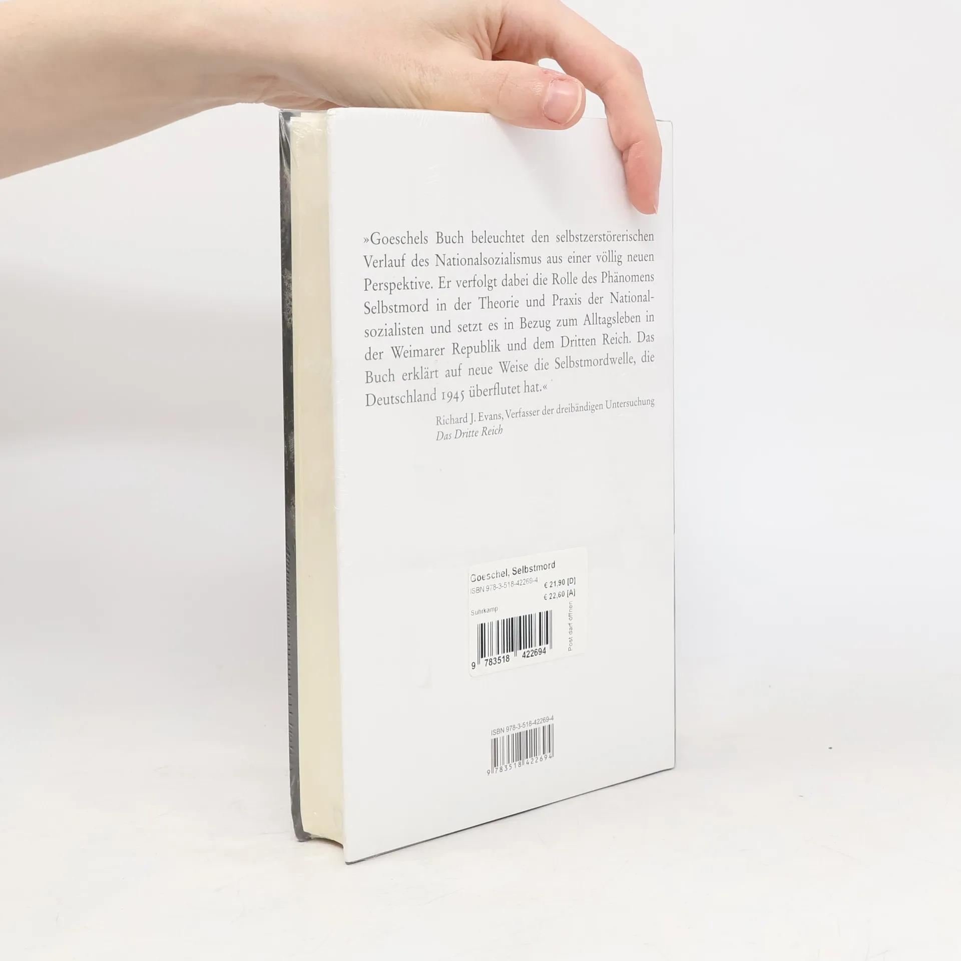 Hitler, Goebbels, Bormann und Himmler – sie alle brachten sich um, als »ihr Deutsches Reich« unterging. Die Geschichte des Selbstmords im Dritten Reich zu erzählen bedeutet aber vielmehr, ganz andere Personen in den Blick zu nehmen: Anhänger und Gegner des Regimes, Soldaten und Frauen, verfolgte Gruppen, unter ihnen insbesondere Juden. Die Motive, die bereits in der Weimarer Republik, verstärkt jedoch während des Zweiten Weltkriegs und nach der Kapitulation zu hohen Selbstmordraten geführt haben, differieren. Diesen unterschiedlichen Motiven nachzugehen, den Menschen hinter den Zahlen ein Gesicht und eine Geschichte zu geben, dieses Verdienst kommt dem Autor dieser bereits mit hoher Aufmerksamkeit bedachten Studie zu. Christian Goeschels Buch verbindet die sozialen, kulturellen, ökonomischen und politischen Rahmenbedingungen mit den Diskursen über Selbstmord und den Einzelschicksalen, die hinter den Selbstmordraten stehen. Der Autor analysiert Presseberichte, Propagandamaterial, Selbstmordstatistiken, Abschiedsbriefe, Polizeiunterlagen, Gerichtsdokumente und wissenschaftliche Abhandlungen aus dem Zeitraum von der Weimarer Republik bis nach der Kapitulation. Er kann zeigen, daß Selbstmord im Dritten Reich eine Option zwischen Selbstbestimmung und Bewahrung der Würde war – und oft die letzte Hoffnung im Angesicht des nationalsozialistischen Schreckens.
