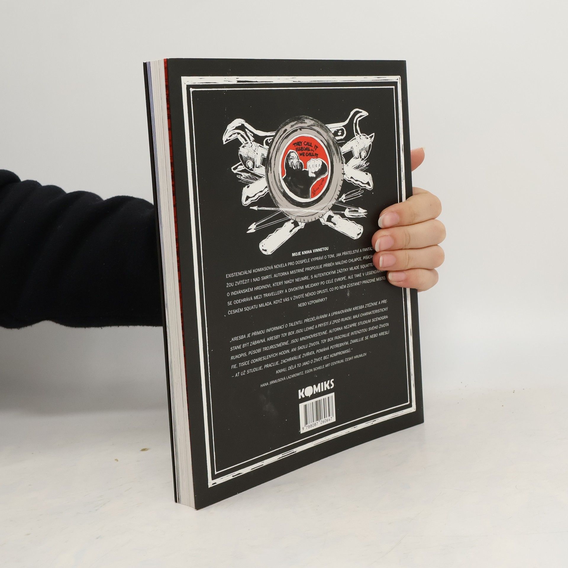 Existenciální komiksová novela pro dospělé vypráví o tom, jak přátelství a fantazie dokážou zvítězit i nad smrtí. Autorka mistrně propojuje příběh malého chlapce, píšícího knihu o indiánském hrdinovi, který nikdy neumře, s autentickými zážitky mladé squatterky. Děj se odehrává mezi travellery a divokými mejdany po celé Evropě, ale také v legendárním českém squatu Milada. Když vás v životě někdo opustí, co po něm zůstane? Prázdné místo, nebo vzpomínky?