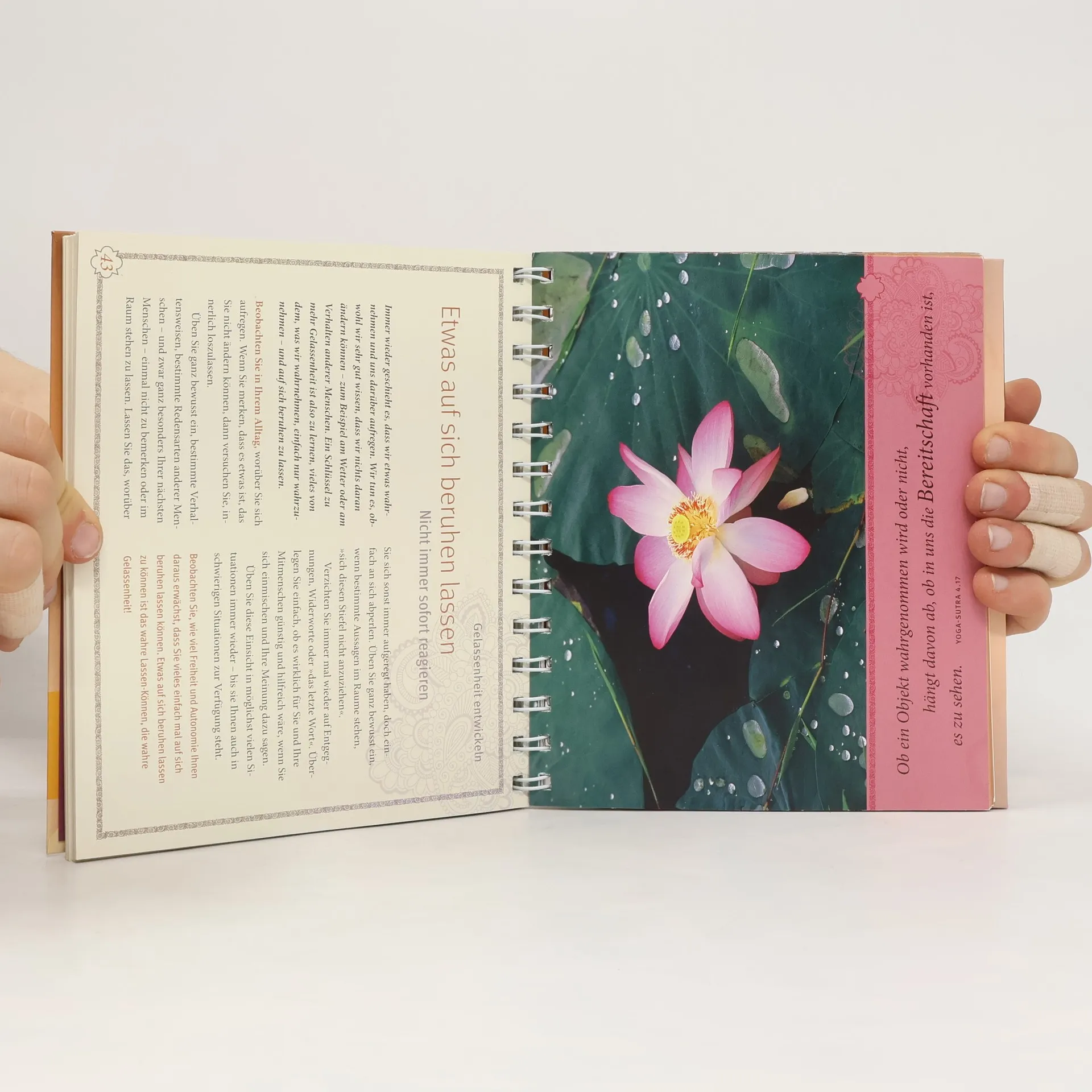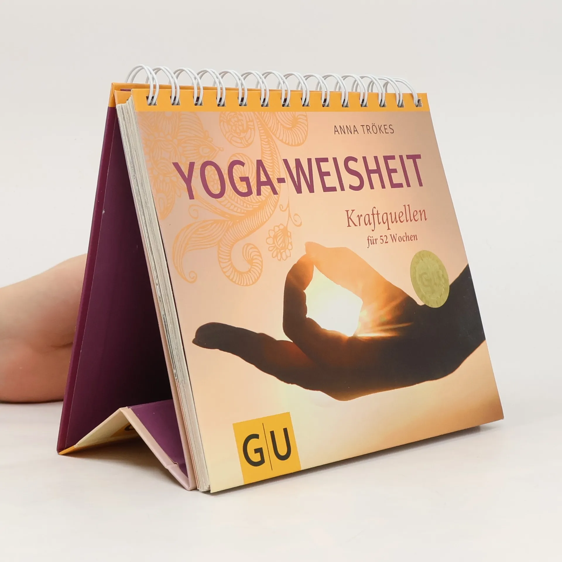 Wer Yoga praktiziert, interessiert sich oft nicht nur für die Körperübungen, sondern auch für die Philosophie, die dahinter steht. Yoga-Philosophie ist kein akademisches System für Intellektuelle. So wie die erfahrene Yogalehrerin und Bestsellerautorin Anna Trökes sie vermittelt, liefert sie praktische Unterstützung für unseren Alltag. Für den inspirierenden Tischaufsteller hat die Autorin dreizehn große Lebensthemen wie Vertrauen entwickeln, innere Kraftquellen finden, zur Ruhe kommen, den Geist stabilisieren, innere Zufriedenheit kultivieren, ausgewählt. Zu jedem dieser Themen gibt es vier Übungsanleitungen -Meditationen, Kontemplationen, Reflexionen- und vier passende Fotos mit Zitaten, Der Leser hat die Möglichkeit, sich von diesem Tischaufsteller durch die 52 Wochen eines Jahres begleiten und führen oder sich je nach Lust und Laune inspirieren zu lassen. Ein wunderschönes Geschenk nicht nur für Yoga-Praktizierende, sondern für alle, die offen sind für fernöstliche Weisheit.