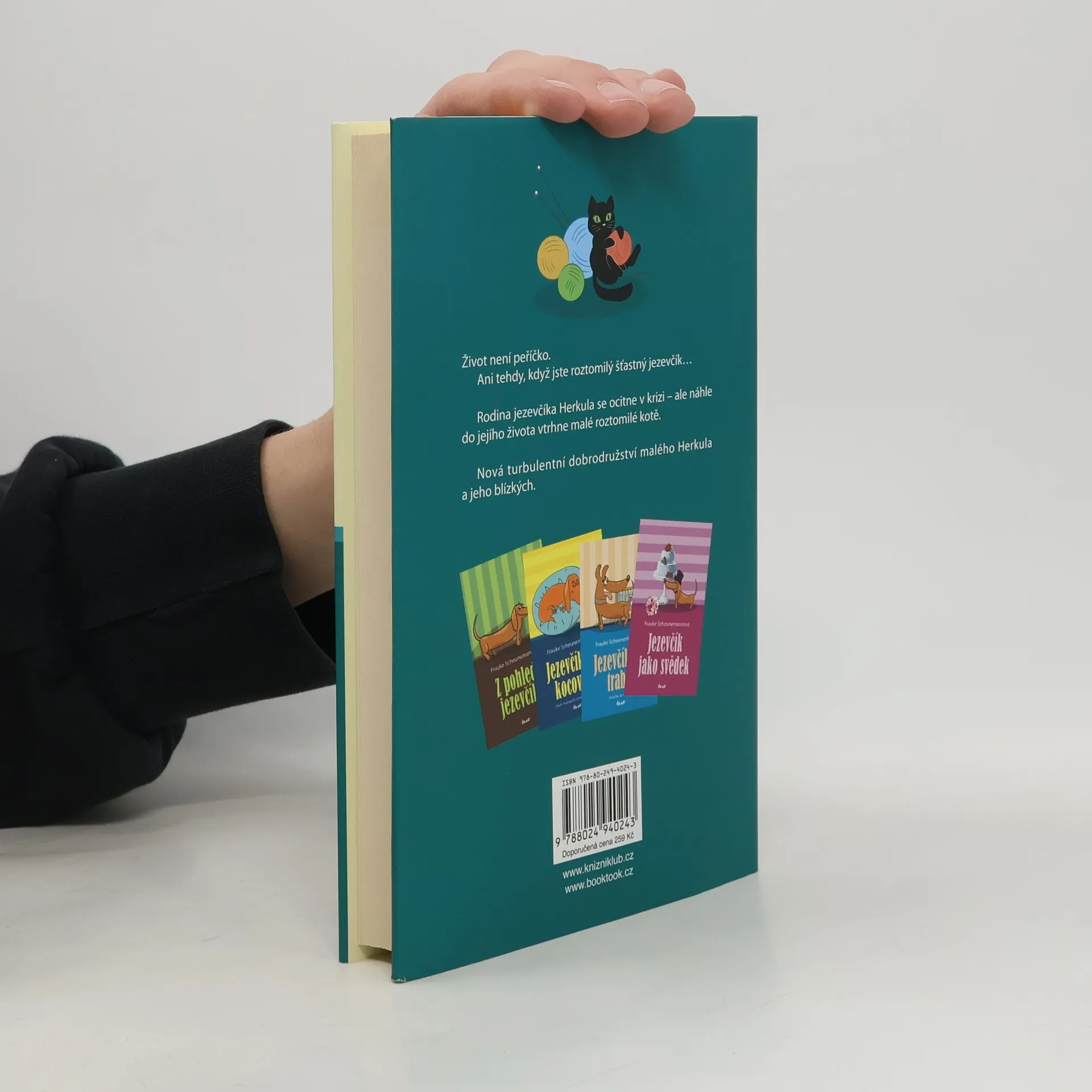 Katastrofický alarm u jezevčíka Herkula! Jeho nejlepší přítel, kocour pan Felix odešel do věčných lovišť. A jeho rodina pro něho není příliš velkou útěchou. Ale pak jednoho rána visí na dveřích Markovy ordinace taška. Obsah: malé černé koťátko. A krátce nato už není nic takové jako dřív… Pokračování úspěšné série Z pohledu jezevčíka, Jezevčíkova kocovina, Jezevčíkovy trable a Jezevčík jako svědek..