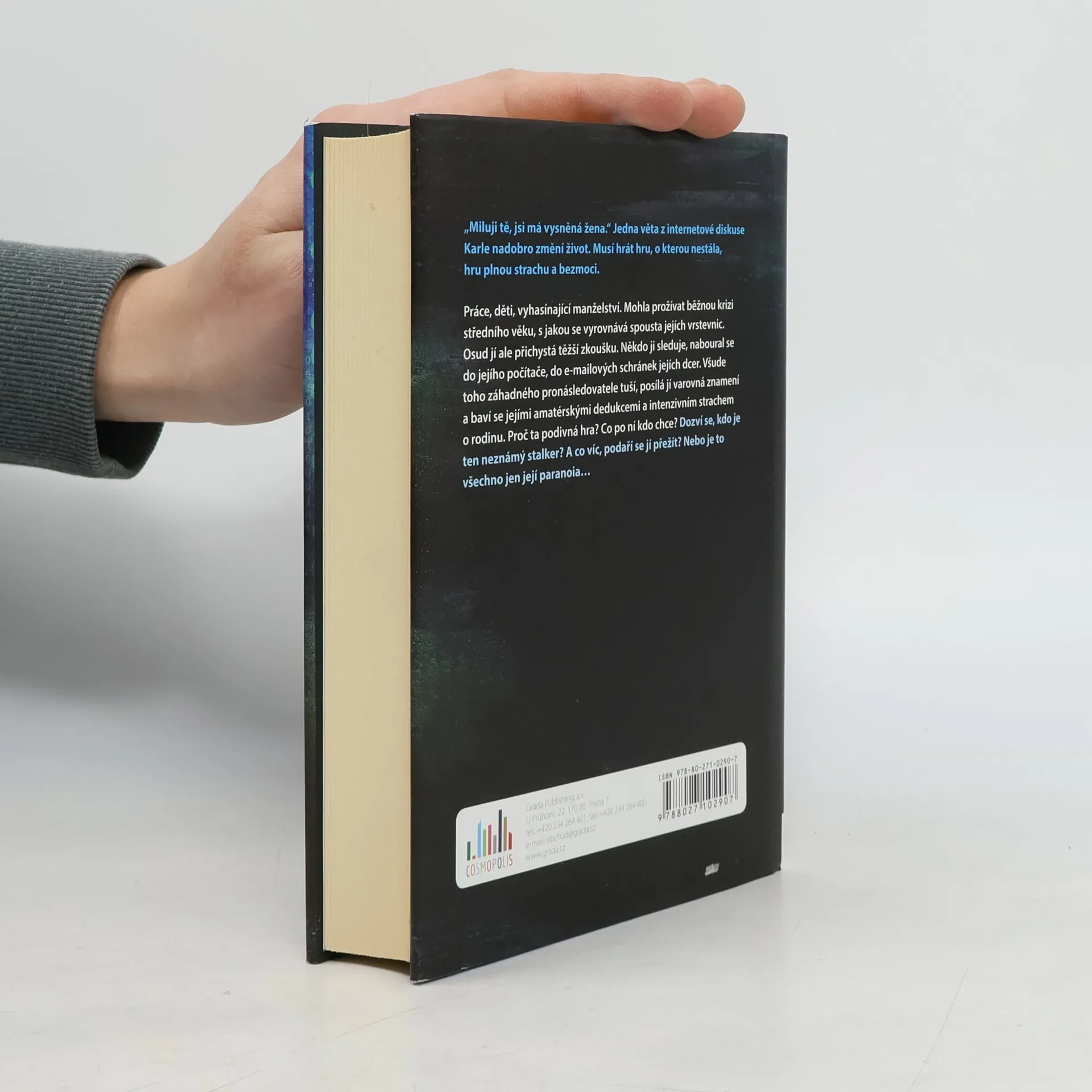 Jediná věta promění Karle život v peklo. Mohla prožívat běžnou krizi středního věku, s jakou se vyrovnává spousta jejích vrstevnic. Osud jí ale přichystá zkoušku těžšího kalibru. Někdo ji sleduje, naboural se do jejího počítače, do e-mailových schránek jejích dcer. Všude toho neznámého pronásledovatele tuší, posílá jí varovná znamení a baví se jejími amatérskými dedukcemi a intenzivním strachem o rodinu. Proč ta podivná hra? Co po ní kdo chce? Karla se snaží se najít jakoukoliv stopu, která by jí pomohla všechno pochopit, ale nemá žádnou podporu v okolí. Cítí se jako štvaná zvěř. Je kořistí opravdového útočníka, nebo své vlastní fantazie? Proč se ve všem dá najít skrytý význam? Možná je opravdu blázen, jak si myslí její muž. Hraje hru, o kterou nestála, hru plnou strachu a bezmoci.