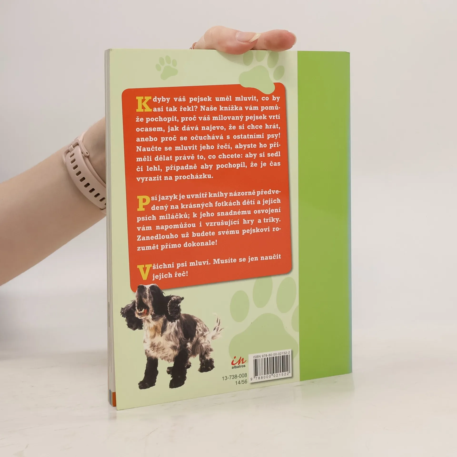 Kdyby váš pejsek uměl mluvit, co by asi tak řekl? Naše knížka vám pomůže pochopit, proč váš milovaný pes vrtí ocasem, jak dává najevo, že si chce hrát, anebo proč se očuchává s ostatními psy! Naučte se mluvit psí řečí, abyste svého pejska přiměli dělat právě to, co chcete: aby si sedl či lehl, případně aby pochopil, že je čas vyrazit na procházku. Psí jazyk je v knize názorně předvedený na krásných fotkách dětí a jejich psích miláčků; k jeho snadnému osvojení vám napomůžou i vzrušující hry a triky. Zanedlouho už budete svému pejskovi rozumět přímo dokonale. Všichni psi mluví. Musíte se jen naučit jejich řeč!