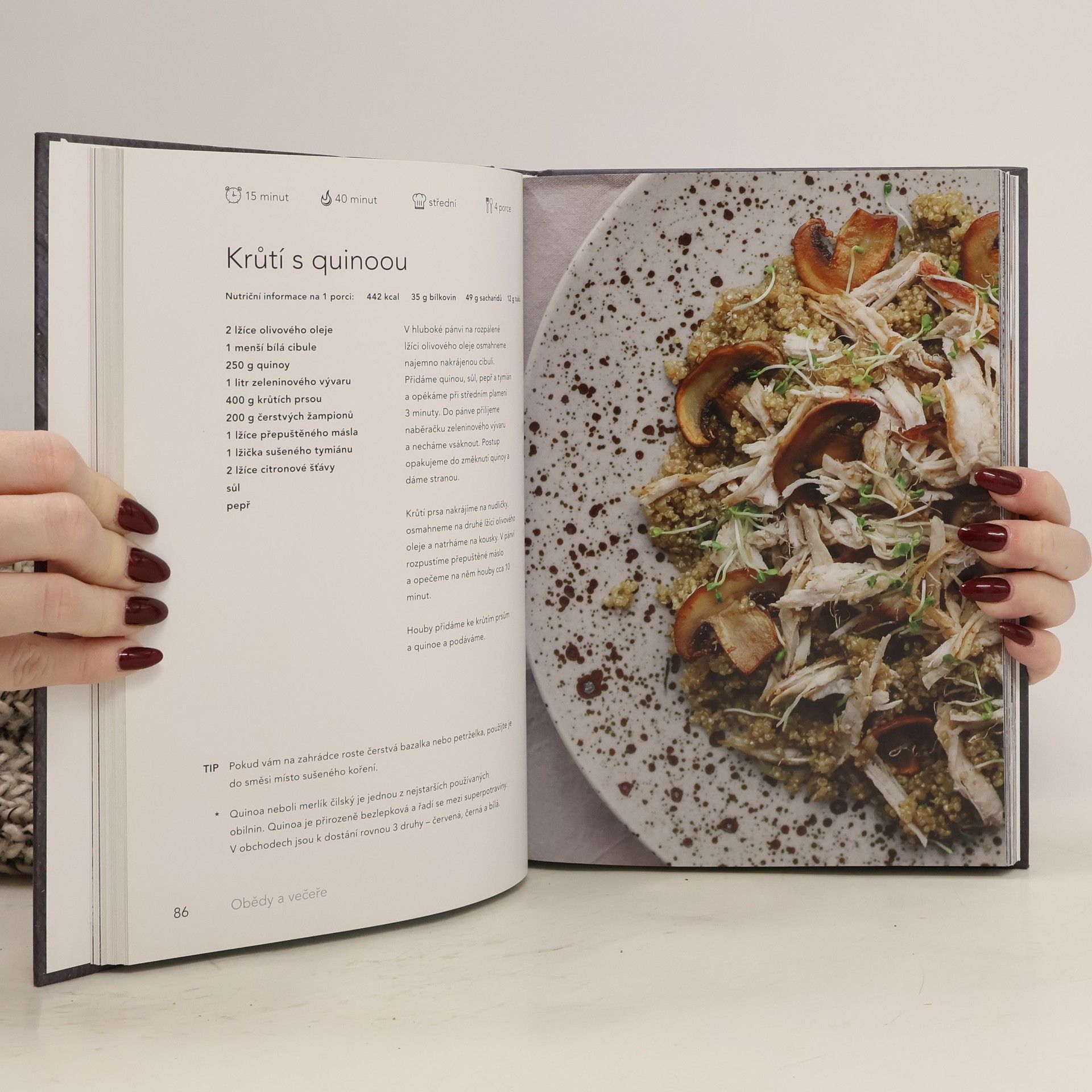 V kuchařce najdete 120 receptů, které jsou řazené do kategorií podle druhu jídla. Snídaně, polévky, pomazánky a tak dále. U každého najdete kromě jednoduchého postupu také nutriční hodnoty a tipy, čím jídlo ozvláštnit. Kniha potěší jak úplné začátečníky, kteří s vařením teprve začínají a potřebují pomocnou ruku, tak zkušené kuchařky a kuchaře, hledající originální a zdravé recepty pro celou rodinu