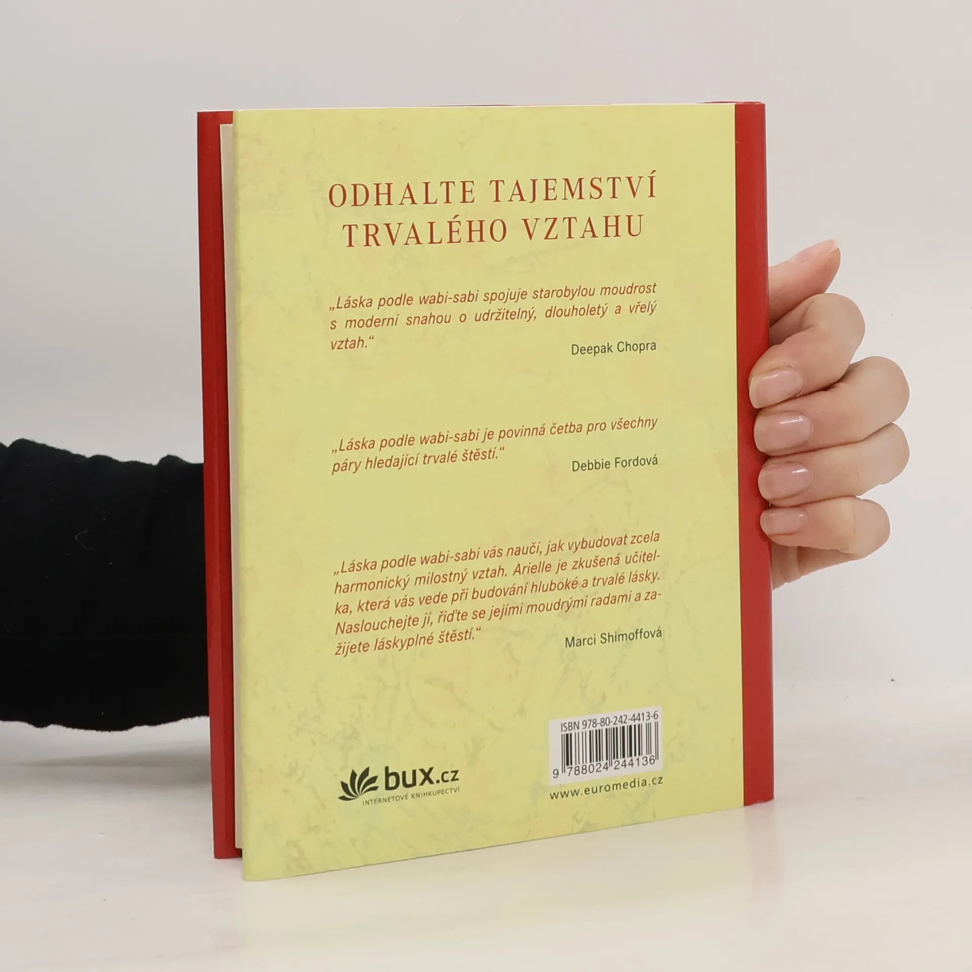 Nová kniha úspěšné autorky, známé našim čtenářům oblíbeným dílem Tajemství spřízněných duší, přibližuje využití principů wabi-sabi, které mohou prospět mnoha manželským a partnerským vztahům. Základní myšlenkou tohoto starodávného japonského umění je poznání, že krásu lze najít i v nedokonalosti – a právě praktikováním lásky podle wabi-sabi lze uhladit různé nesrovnalosti či sváry a cenit si u svého partnera i jistých méně žádoucích rysů. Reálné příběhy dvojic, mnohdy i slavných, jsou názornými příklady, jak toto učení funguje. Určitě se s ním rádi seznámí všichni ti, kteří k sobě vzájemně hledají cestu, aby spolu dovedli dobře vycházet.