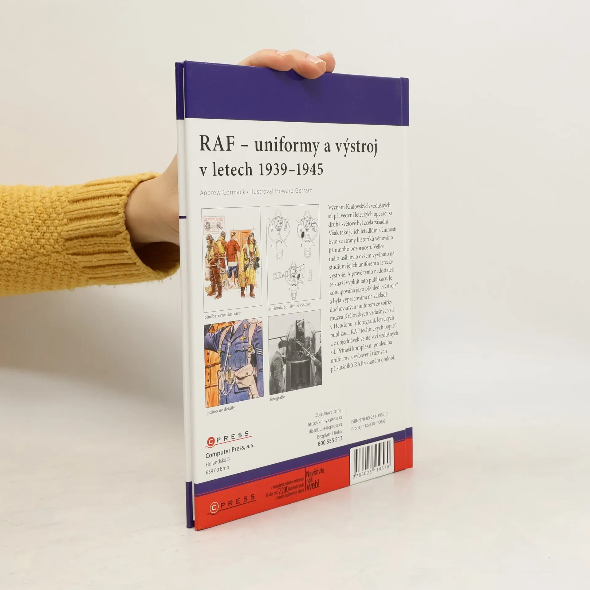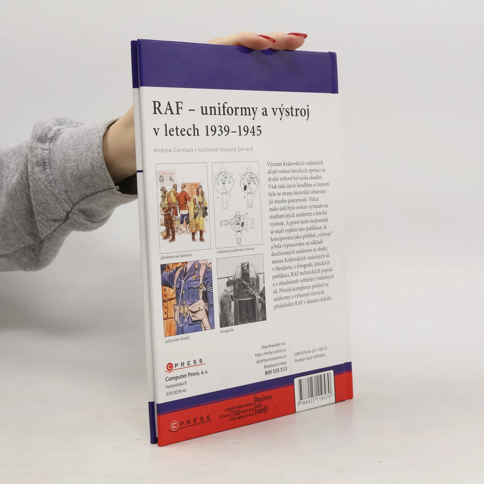 Význam Královských vzdušných sil při vedení leteckých operací za druhé světové byl zcela zásadní. Však také jejich letadlům a činnosti bylo ze strany historiků věnováno již mnoho pozornosti. Velice málo úsilí bylo ovšem vyvinuto na studium jejich uniforem a letecké výstroje. A právě tento nedostatek se snaží vyplnit tato publikace. Je koncipována jako přehled „výstroje“ a byla vypracována na základě dochovaných uniforem ze sbírky muzea Královských vzdušných sil v Hendonu, z fotografií, leteckých publikací, RAF technických popisů a z objednávek velitelství vzdušných sil. Přináší komplexní pohled na uniformy a vybavení různých příslušníků RAF v daném období.