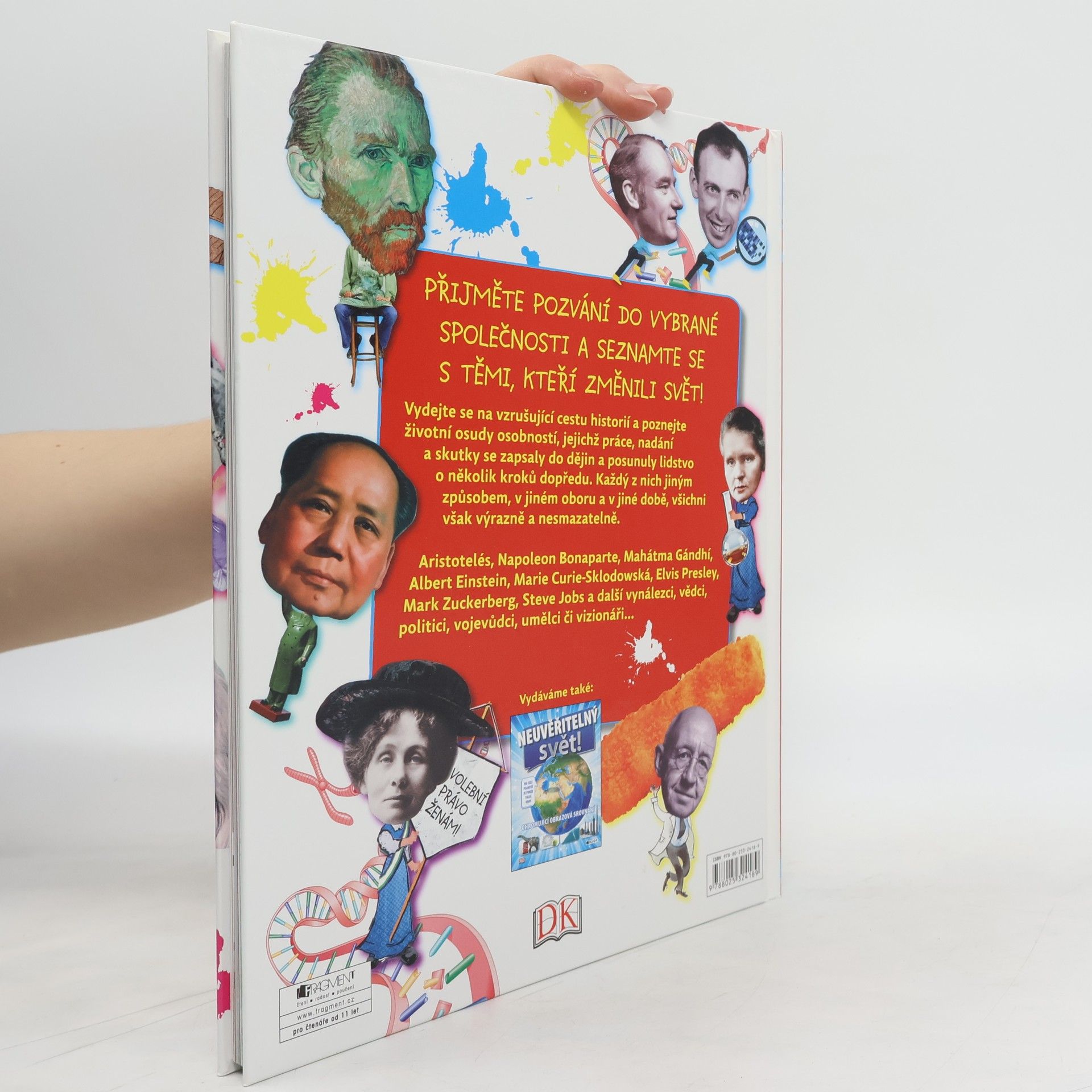 Přijměte pozvání do vybrané společnosti a seznamte se s těmi, kteří změnili svět! Vydejte se na vzrušující cestu historií a poznejte životní osudy osobností, jejichž práce, nadání a skutky se zapsaly do dějin a posunuly lidstvo o několik kroků dopředu. Každý z nich jiným způsobem, v jiném oboru a v jiné době, všichni však výrazně a nesmazatelně. Aristoteles, Napoleon Bonaparte, Mahátma Gándhí, Albert Einstein, Marie Curie-Sklodowská, Elvis Presley, Mark Zuckerberg, Steve Jobs a další vynálezci, vědci, politici, vojevůdci, umělci či vizionáři...