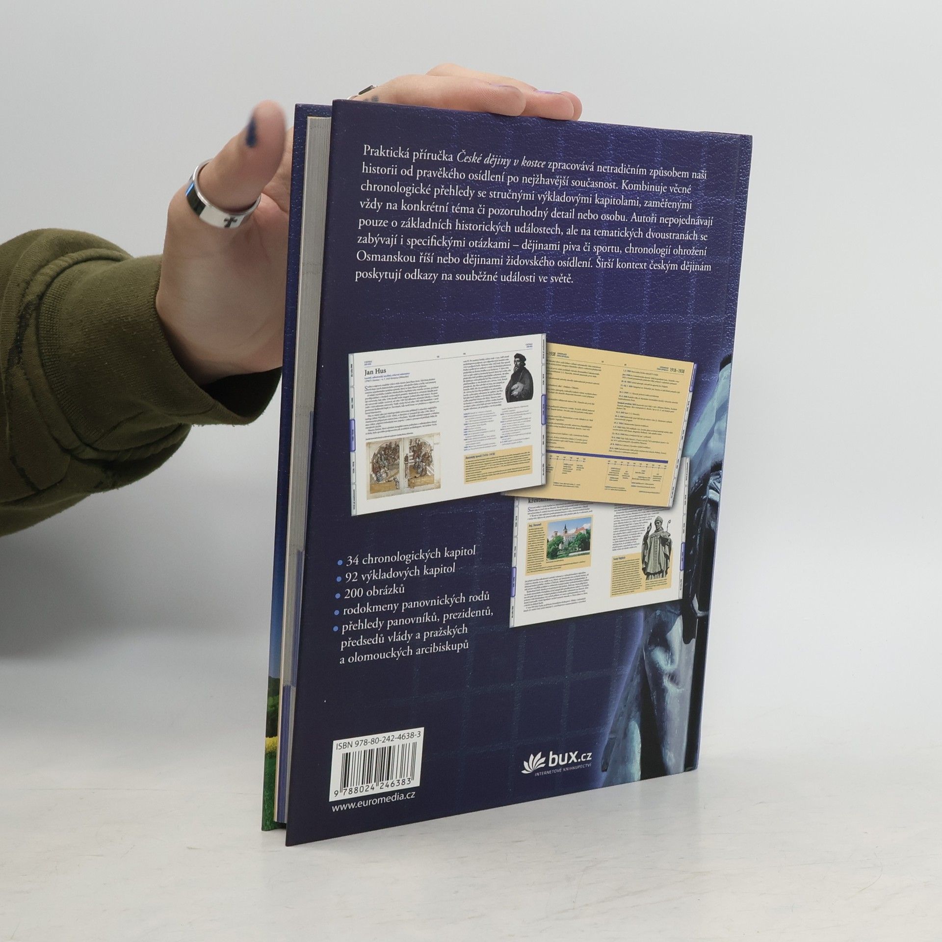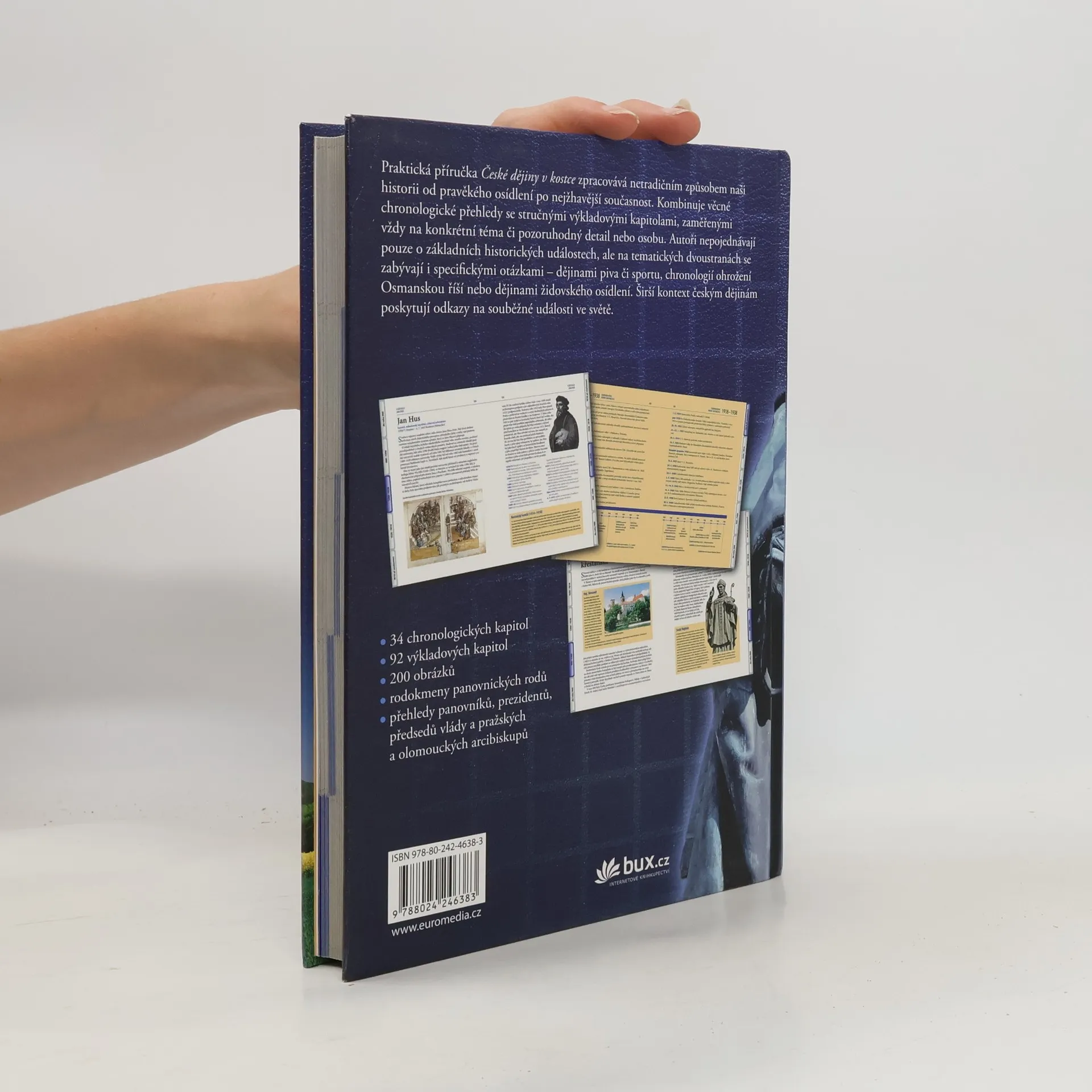 Praktická přehledová příručka, která čtenáři pomůže, aby se zorientoval v dějinách českých zemí od pravěku po 20. století, zapamatoval si důležitá data a zařadil si význačné osobnosti a události. Praktické chronologie, díky nimž lze místní události sledovat na pozadí světové historie, se střídají s tematickými kapitolami a podrobnějšími rozbory.