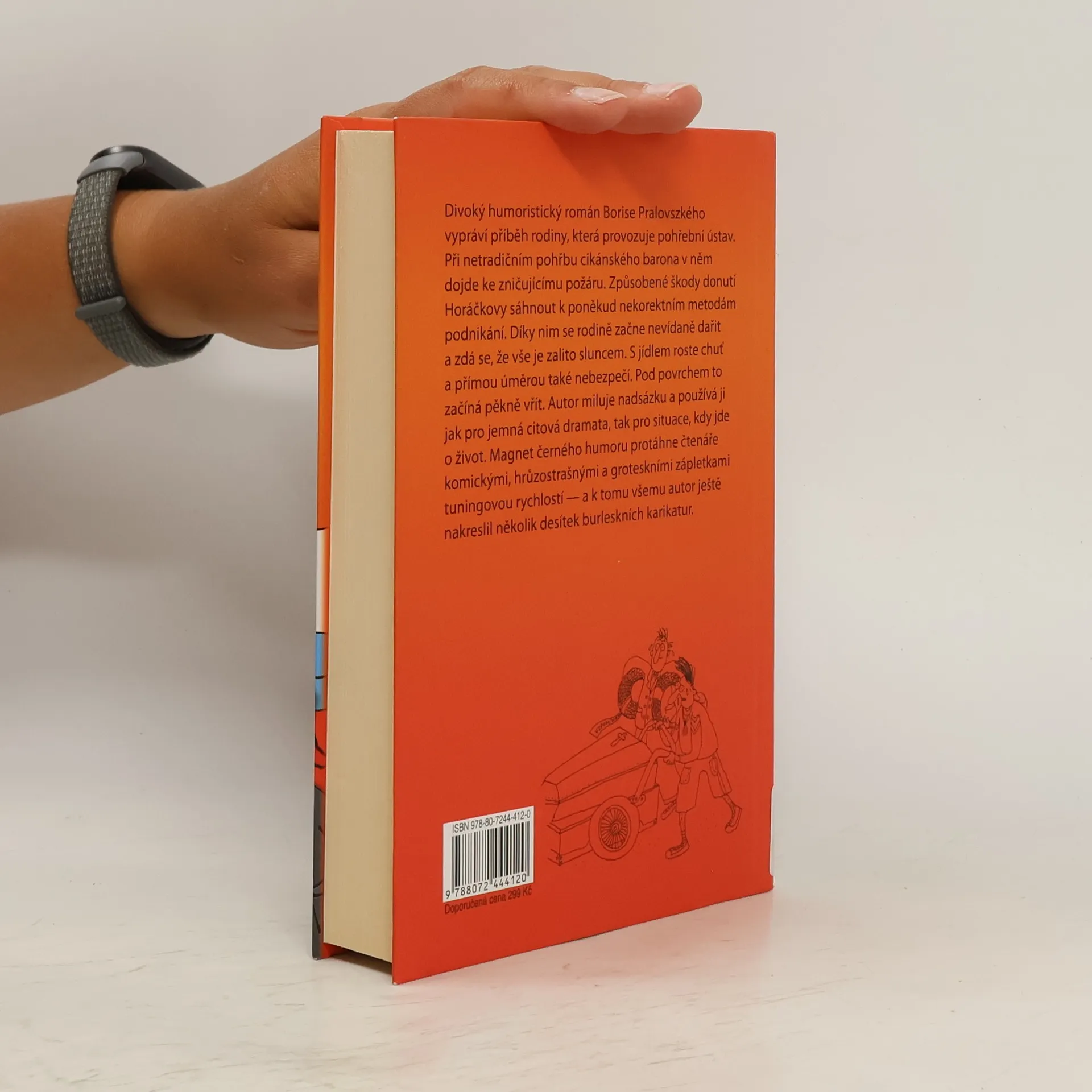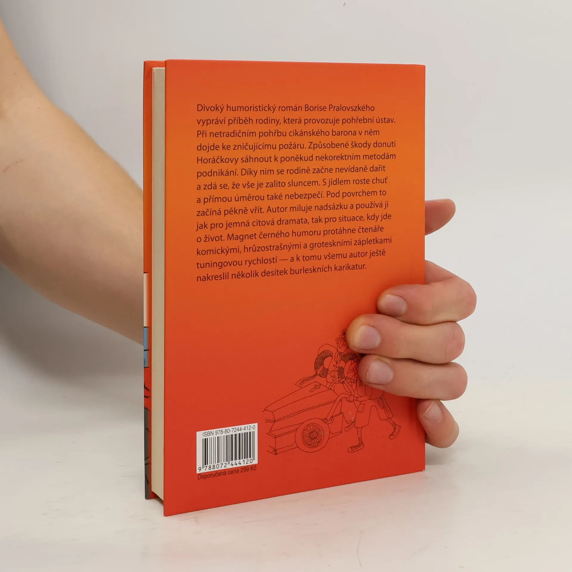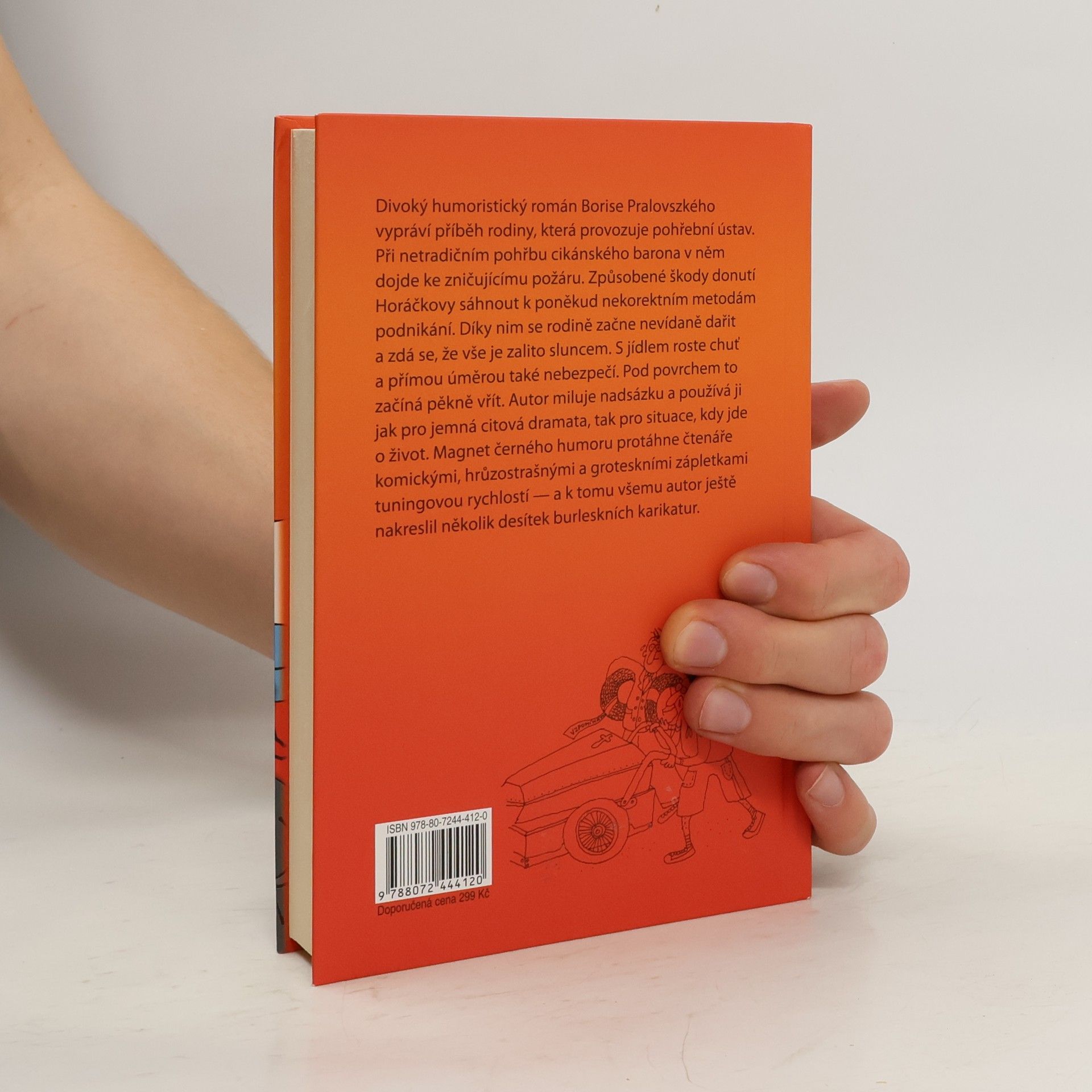 Román se odehrává v pohřebním ústavu, kam žádné lehkovážné vtipkování nepatří, a přesto rodina Horáčkových přitahuje komické situace jako magnet a každou katastrofu se jim absurdním způsobem podaří obrátit ve výhru přesně podle pravidla, že život se nemá brát příliš vážně, protože stejně skončí na hřbitově. Černý humor Borise Pralovszkého je drsný i něžný stejně jako jeho ilustrace ke knize a smích čtenáře vždycky osvobodí, když se děj náhle splaší a hlavní hrdinové se ocitnou v neřešitelné situaci.