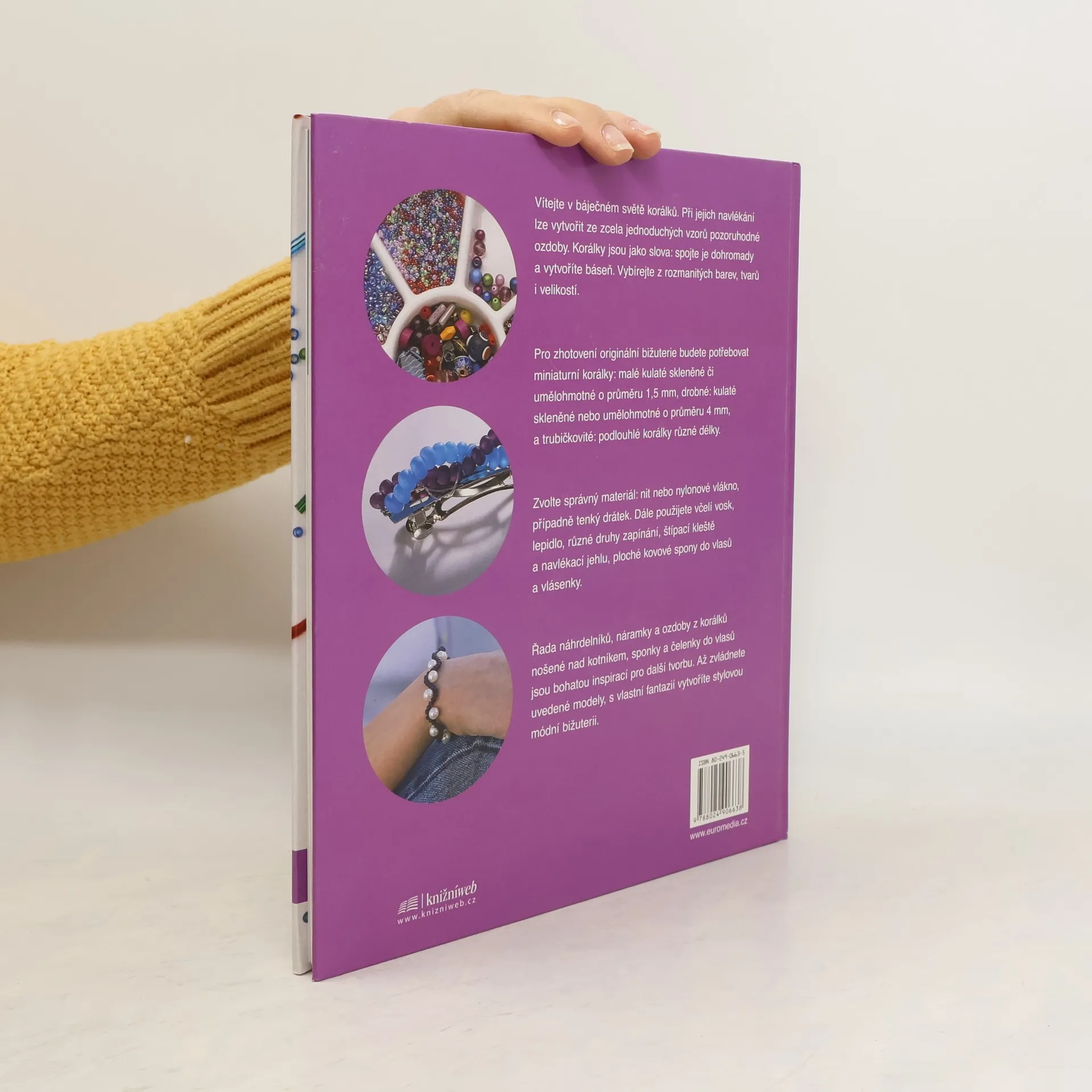 Vítejte v báječném světě korálků. Při jejich navlékání lze vytvořit ze zcela jednoduchých vzorů pozoruhodné ozdoby. Korálky jsou jako slova: spojte je dohromady a vytvoříte báseň. Vybírejte z rozmanitých barev, tvarů i velikostí. Pro zhotovení originální bižuterie budete potřebovat miniaturní korálky: malé kulaté skleněné či umělohmotné o průměru 1,5 mm, drobné: kulaté skleněné nebo umělohmotné o průměru 4 mm, a trubičkovité: podlouhlé korálky různé délky. Zvolte správný materiál: nit nebo nylonové vlákno, případně tenký drátek. Dále použijete včelí vosk, lepidlo, různé druhy zapínání, štípací kleště a navlékací jehlu, která velmi usnadní práci, ploché kovové spony do vlasů a vlásenky. Řada náhrdelníků, náramky a ozdoby z korálků nošené nad kotníkem, sponky a čelenky do vlasů jsou bohatou inspirací pro další tvorbu. Až zvládnete uvedené modely, s vlastní fantazií vytvoříte stylovou módní bižuterii.
