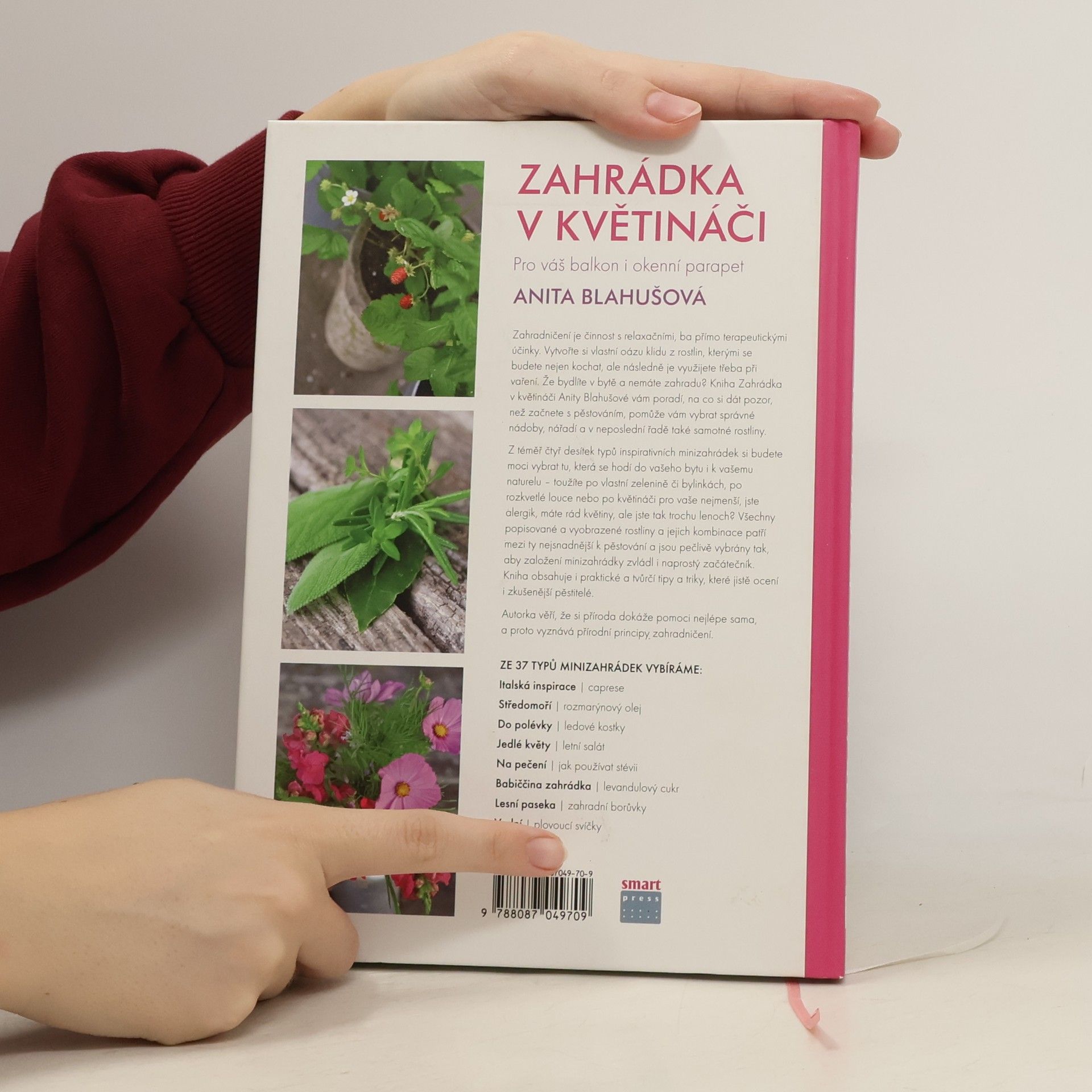 Celé dny trávíme uvnitř – ať už doma nebo v práci – odtrženi od zeleně a čerstvého vzduchu. Zahradničení je činnost s relaxačními, ba přímo terapeutickými účinky. Vytvořte si vlastní oázu klidu z rostlin, kterými se budete nejen kochat, ale následně je využijete třeba při vaření nebo jako zábavu pro děti. Že bydlíte v bytě a nemáte zahradu? K vytvoření minizahrádky vám postačí balkon nebo okenní parapet! Kniha Zahrádka v květináči Anity Blahušové vám poradí na co si dát pozor, než začnete s pěstováním, pomůže vám vybrat správné nádoby, nářadí a také rostliny vhodné právě pro váš domov. Krok za krokem s vámi rostliny zasadí, zbývá už jen zvolit si ten pravý typ zahrádky. Ze 37 inspirativních minizahrádek si budete moci vybrat tu, která se hodí do vašeho bytu i k vašemu naturelu – toužíte po vlastní zelenině či bylinkách, po rozkvetlé louce nebo po květináči pro vaše nejmenší, jste alergik, máte rádi květiny, ale jste tak trochu lenoch? Všechny popisované a vyobrazené rostliny a jejich kombinace patří mezi ty nejsnadnější k pěstování a jsou pečlivě vybrané tak, aby založení mini zahrádky zvládl i naprostý začátečník. Kniha obsahuje i praktické a tvůrčí tipy a triky, které jistě ocení i letití zahrádkáři.