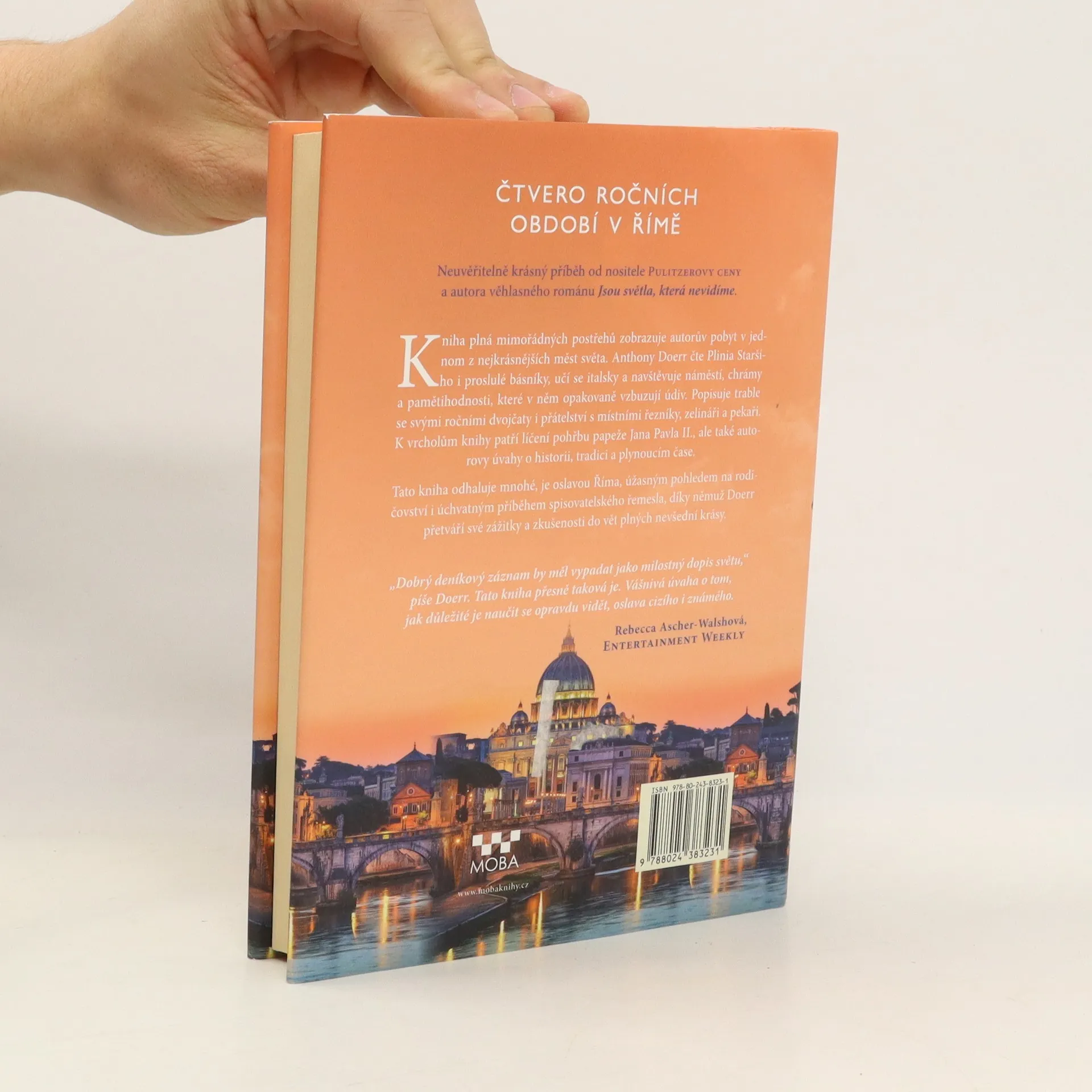 Výjimečná kniha – je plná mimořádných postřehů a popisuje Doerrova dobrodružství v jednom z nejúchvatnějších měst na světě. Anthony čte Plinia, Danta a Keatse ‒ staré kronikáře Říma ‒ a navštěvuje náměstí, chrámy a pamětihodnosti, o kterých tito muži psali. Účastní se vigilie umírajícího Jana Pavla II. a v prosinci vezme svá dvojčata do Pantheonu, aby jim ukázal, jak dovnitř okulem padá sníh. Společně se svojí rodinou se spřátelí s místními řezníky, zelináři a pekaři, jejichž hlučné příběhy a osobité výchovné rady jsou stejně neodolatelné jako samotný Řím. Tato osobní kniha odhaluje mnohé, je oslavou Říma, úžasným novým pohledem na rodičovství a úchvatným příběhem spisovatelského řemesla ‒ díky němuž Doerr přetváří své zážitky a zkušenosti do vět.