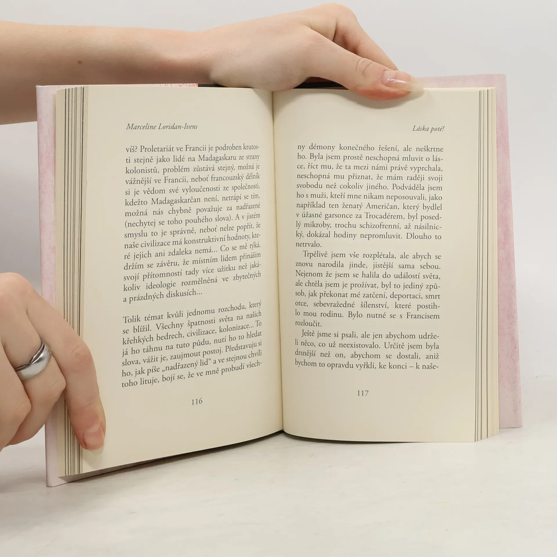 Lásku jsem začala hledat mezi těmi, kdo přežili. To nebyla volba, jen otázka kruhů; Židé mezi sebou. Židovské rodiny snily o tom, že své děti ožení nebo vdají mezi sebou. Jak jsem se potkala s Freddiem? Už nevím. Možná přes kamarádku. Líbil se mi – tmavý, se zelenýma očima, ne moc vysoký, ale dost pro mě. Všechno v něm ale znovu obkreslovalo kontury koncentračního tábora: jeho otec tam zemřel jako ten můj, jeho matka se vrátila, ale poblázněná, a dala se dohromady se židovským lékařem z Polska. Freddie pracoval jako krejčí a ušil mi šedé sako lemované černým sametem, které jsem milovala. Začali jsme spolu chodit, objímali jsme se, líbali se. Věděla jsem, kam to spěje, ale měla jsem strach. Daleko větší strach než z prvního sexu nebo otěhotnění jsem měla ze svého těla, utíkala jsem před ním. Před svou nahotou, navždy spojenou s příkazem nacisty, před ponižujícím pohledem, když nám holili hlavy a pohlaví. Před koncentračním táborem jsem se nikdy před nikým nesvlékla, nikdy předtím jsem neviděla nahé tělo ženy. To své jsem objevila ve stejnou chvíli, kdy jsem pochopila, že je odsouzeno. Ve volném pokračování bestselleru se přináší ojedinělé svědectví o tom, jak obtížné bylo pro ty, kteří prošli peklem koncentračních táborů, najít lásku a důvěru v lidi.