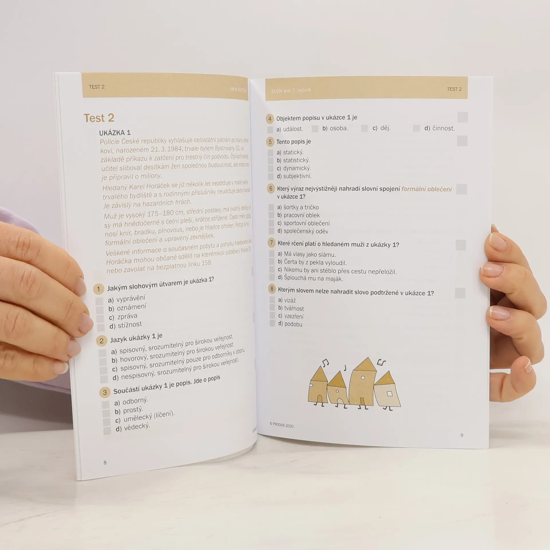 Potřebujete si procvičit češtinu? Přijímací zkoušky jsou možná daleko, ale čas se krátí. Připravte se na ně s testy Umím češtinu? – a začněte třeba slohem. Co najdete ve Slohu pro 7. ročník? * 5 didaktických testů, každý s 20 různorodými úlohami z českého jazyka * otázky zaměřené na základní slohové útvary a jejich výrazové prostředky, funkční styly a stylové postupy, vrstvy jazyka, členění textů a textovou návaznost a další jevy z oblasti stylistiky * přehledně zpracované výsledky * zábavný komiks se soutěží na závěr Vyzkoušejte si testové úlohy Umím češtinu? – Sloh i online na počítači nebo v mobilním telefonu. Na přijímačky se tak můžete připravovat, i když nemáte svůj sešit po ruce. Pusťte se do toho a (nepro) TESTUJTE!