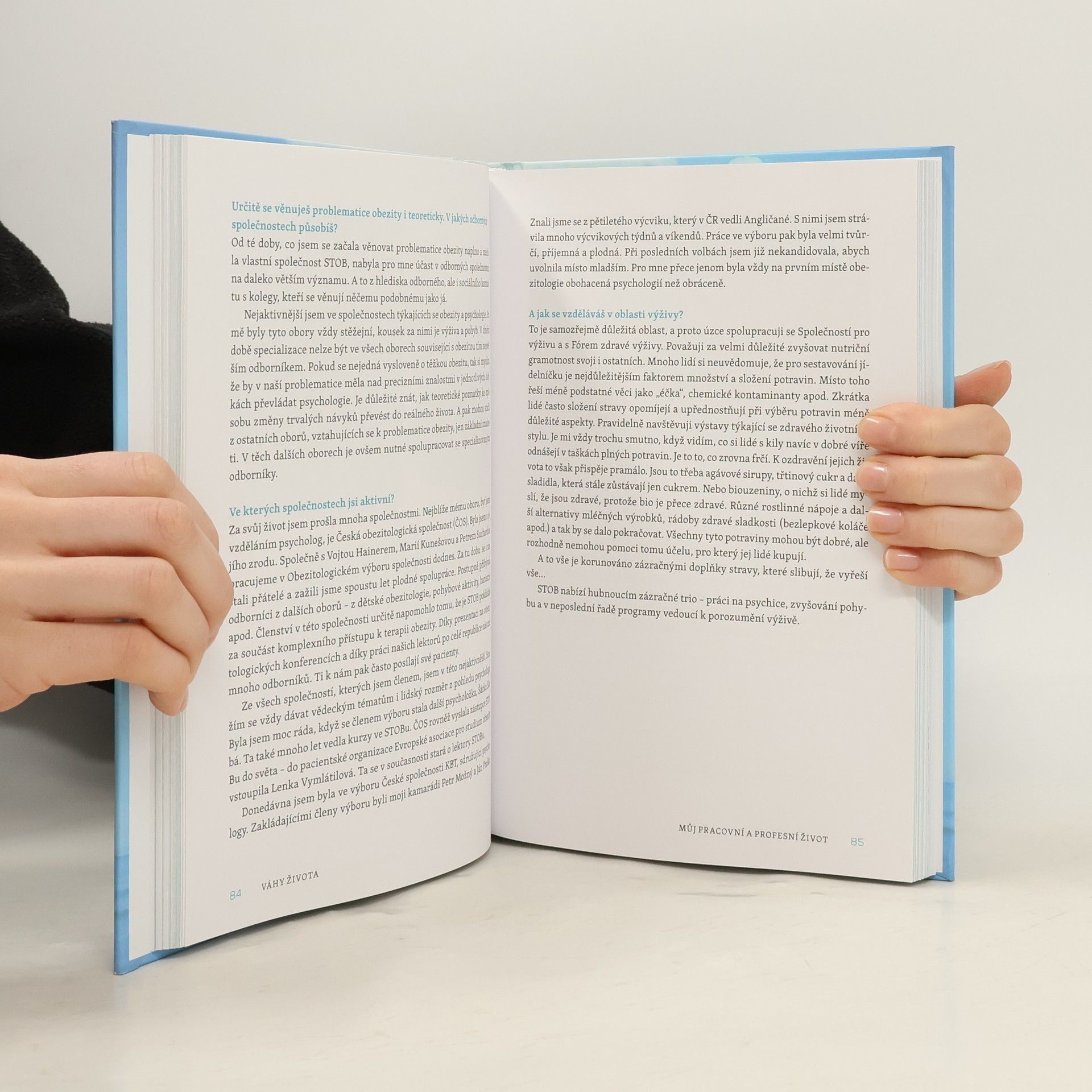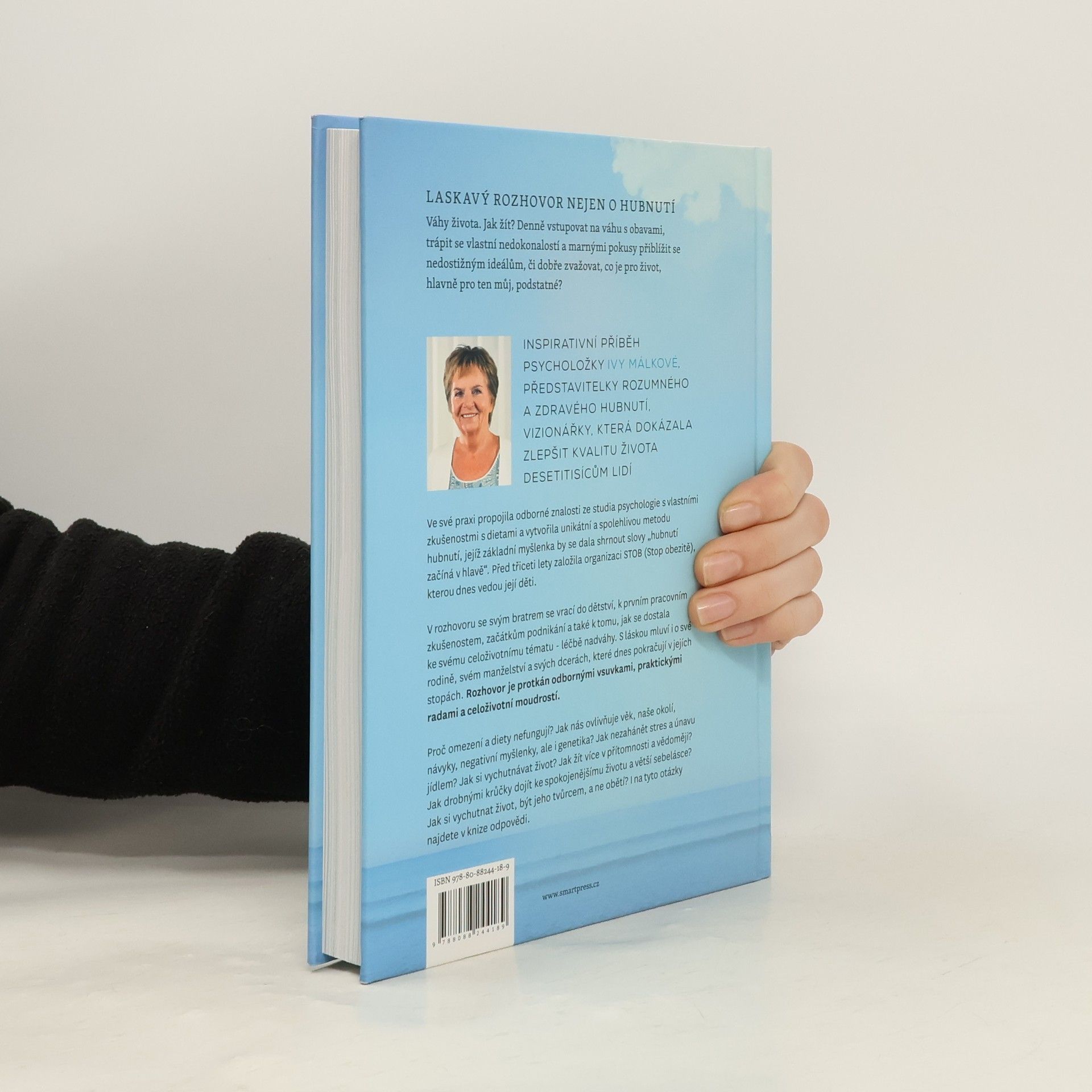 Váhy života. Jak žít? Denně vstupovat na váhu s obavami, trápit se vlastní nedokonalostí a marnými pokusy přiblížit se nedostižným ideálům, či dobře zvažovat, co je pro život, hlavně pro ten můj, podstatné? Inspirativní příběh psycholožky, představitelky rozumného a zdravého hubnutí, vizionářky, která dokázala zlepšit kvalitu života desetitisícům lidí. Ve své praxi propojila odborné znalosti ze studia psychologie s vlastními zkušenostmi s dietami a vytvořila unikátní a spolehlivou metodu hubnutí, jejíž základní myšlenka by se dala shrnout slovy "hubnutí začíná v hlavě". Před třiceti lety založila organizaci STOB (Stop obezitě), kterou dnes vedou její děti. V rozhovoru se svým bratrem se vrací do dětství, k prvním pracovním zkušenostem, začátkům podnikání a také k tomu, jak se dostala ke svému celoživotnímu tématu - léčbě nadváhy. S láskou mluví i o své rodině, svém manželství a svých dcerách, které dnes pokračují v jejích stopách. Rozhovor je protkán odbornými vsuvkami, praktickými radami a celoživotní moudrostí. Proč omezení a diety nefungují? Jak nás ovlivňuje věk, naše okolí, návyky, negativní myšlenky, ale i genetika? Jak nezahánět stres a únavu jídlem? Jak si vychutnávat život? Jak žít více v přítomnosti a vědoměji? Jak drobnými krůčky dojít ke spokojenějšímu životu a větší sebelásce? Jak si vychutnat život, být jeho tvůrcem, a ne obětí? I na tyto otázky najdete v knize odpovědi.