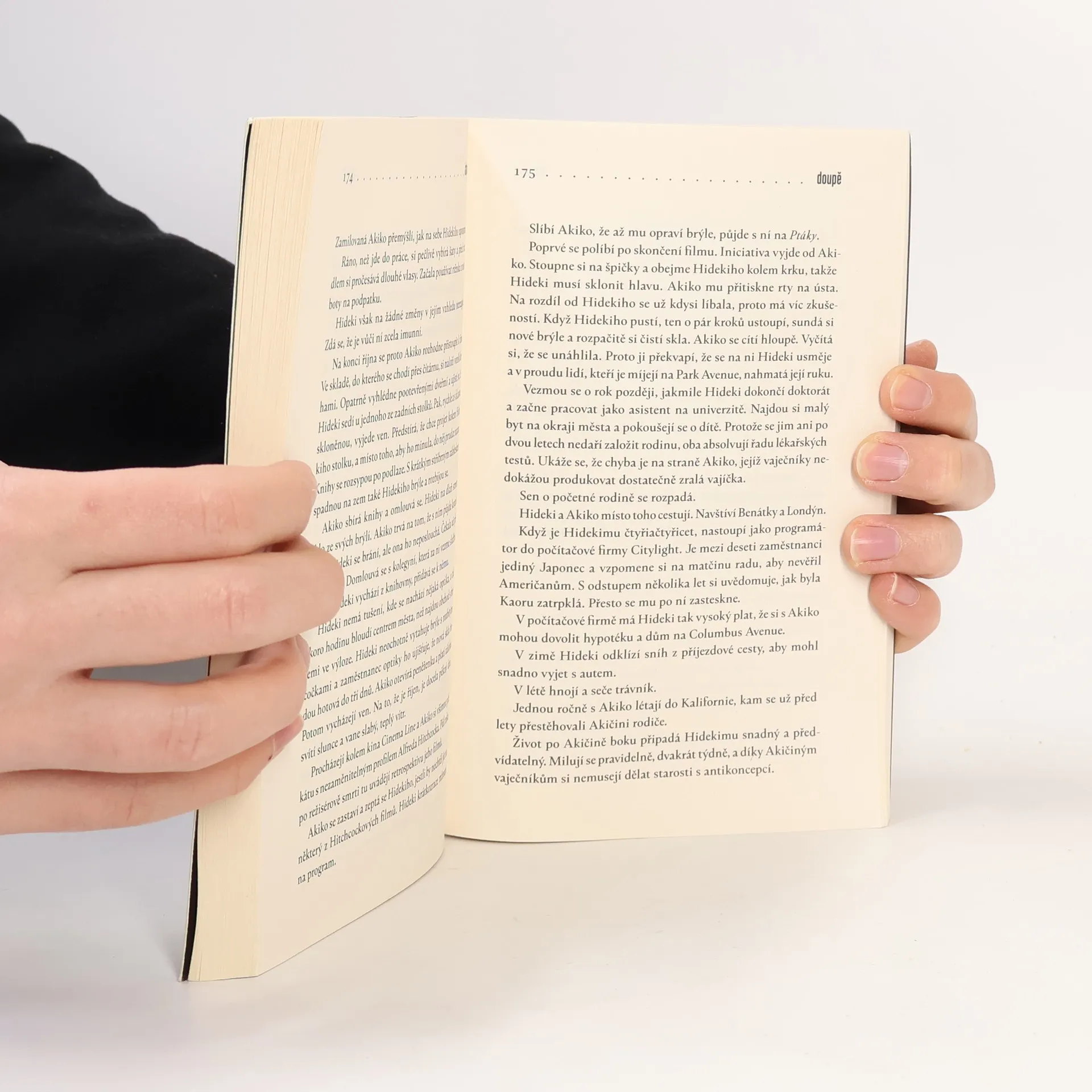 Mnohovrstevnatý román ze současnosti přibližuje životy tří protagonistů, jejichž osudy se v jednom okamžiku střetnou. Květě je něco přes sedmdesát a od manželovy smrti neustále bojuje s dcerou o dům, v němž zůstala sama. Cítí se osamělá a ráda by někomu, kdo bude ochoten ji poslouchat, vyprávěla svůj příběh. Ve sklepě proto vybuduje malé doupě, kam chce svého posluchače zavřít. Mezitím v Americe Akiko Ikedaová marně dochází na chemoterapii. Její muž Hideki těžko ovládá vztek a bezmoc a poslední měsíce nemyslí na nic jiného než na manželčinu rakovinu. Třetí příběh vypráví o Vietnamce Hoang Thi Anhové, která v roce 1990 přistála v Praze, aby pomohla své dceři s malým obchodem a domácností. Těžko se vyrovnává s naprosto odlišnou kulturou a odcizením, které stále pociťuje. Zdánlivě odlišné příběhy se v jednom okamžiku protnou, aby ukázaly na lidská míjení a nedorozumění, s nimiž se všichni ve svých životech setkáváme.