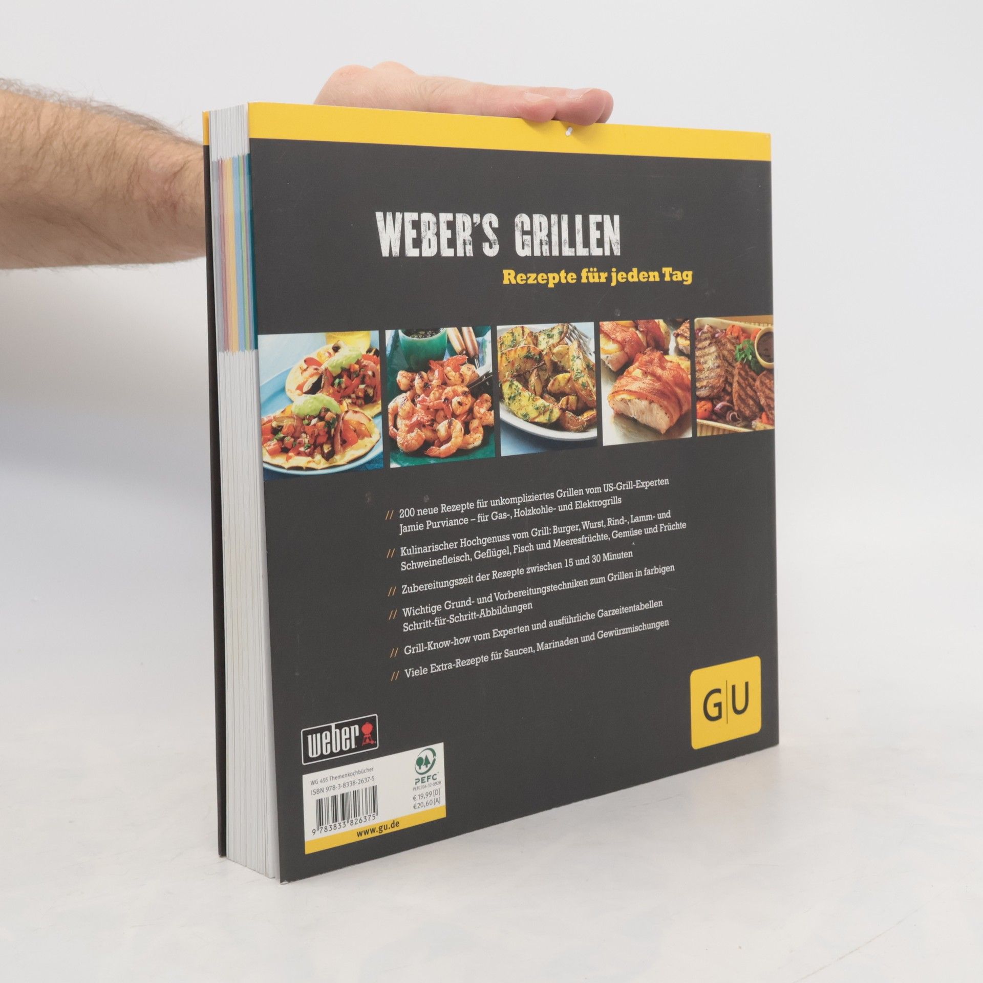 Der US-amerikanische Grill-Guru Jamie Purviance, Autor der Weber's Grillbibel, verwöhnt uns mit 200 neuen Rezepten zum Grillen mit Gas und Holzkohle: Burger, Wurst, Rind-, Lamm- und Schweinefleisch, Fisch, Gemüse und Früchte - alles kommt vom Grill und bietet uns kulinarischen Hochgenuss mit unkomplizierten Grillrezepten für jeden Tag. Eine kleine Küchenpraxis erklärt, wie z. B. richtiges Schneiden von Gemüse und Fleisch und das Vorbereiten von Fisch wirklich funktioniert. Sonderseiten mit Grill-Know-how, Tabellen zum Nachschlagen, die angeben, welches Stück wie lange auf den Grill muss und viele Extra-Rezepte für Saucen, Marinaden und Gewürzmischungen mit der Angabe zu welchem Fleisch sie passen, sorgen in bewährter Qualität dafür, dass dem Jeden-Tag-Grillmeister nichts anbrennt und alles mit Sicherheit gelingt.
