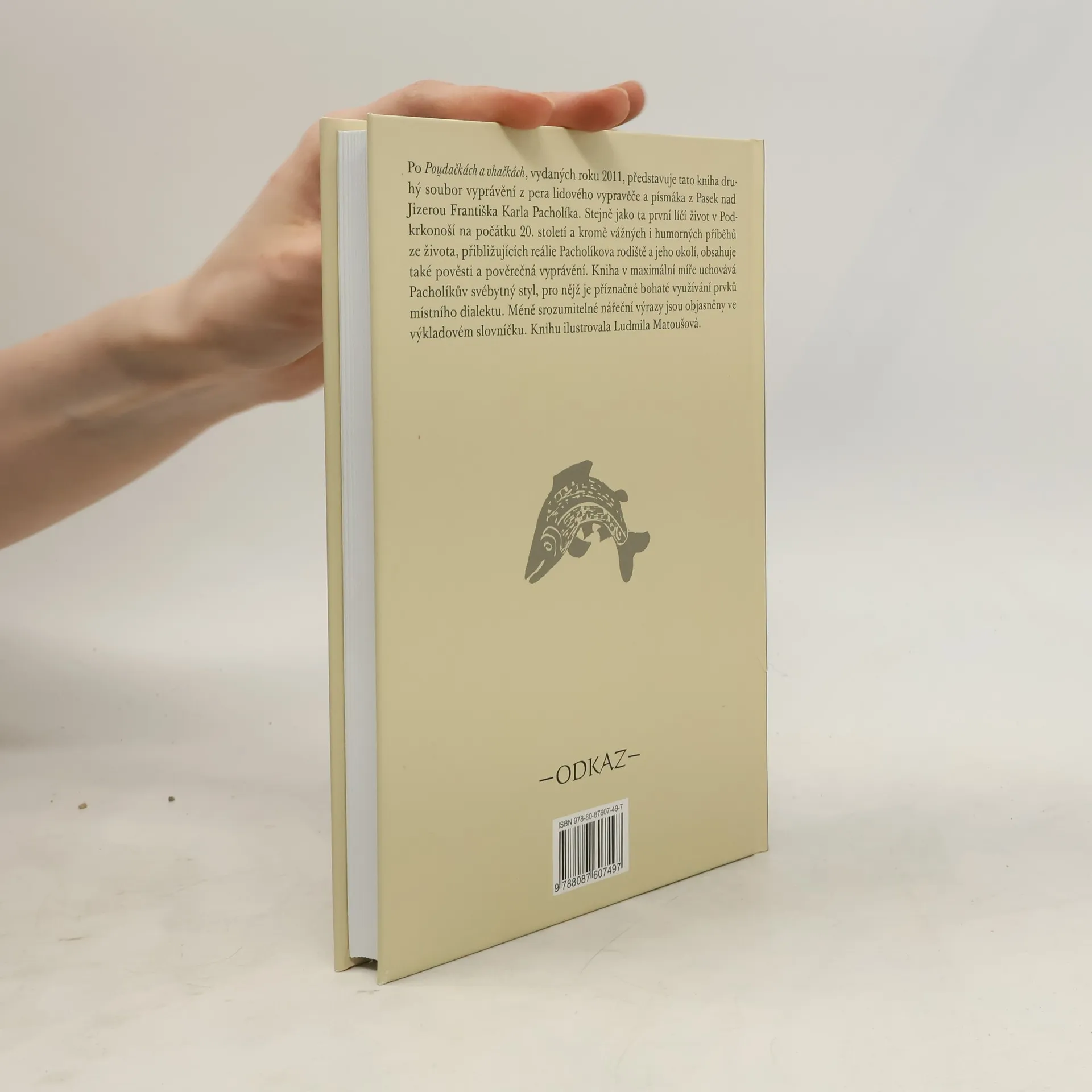 Po Poudačkách a vhačkách, vydaných roku 2011, představuje tato kniha druhý soubor vyprávění z pera lidového vypravěče a písmáka z Pasek nad Jizerou Františka Karla Pacholíka. Stejně jako ta první líčí život v Podkrkonoší na počátku 20. století a kromě vážných i humorných příběhů ze života, přibližujících reálie Pacholíkova rodiště a jeho okolí, obsahuje také pověsti a pověrečná vyprávění. Kniha v maximální míře uchovává Pacholíkův svébytný styl, pro nějž je příznačné bohaté využívání prvků místního dialektu. Méně srozumitelné nářeční výrazy jsou objasněny ve výkladovém slovníčku.