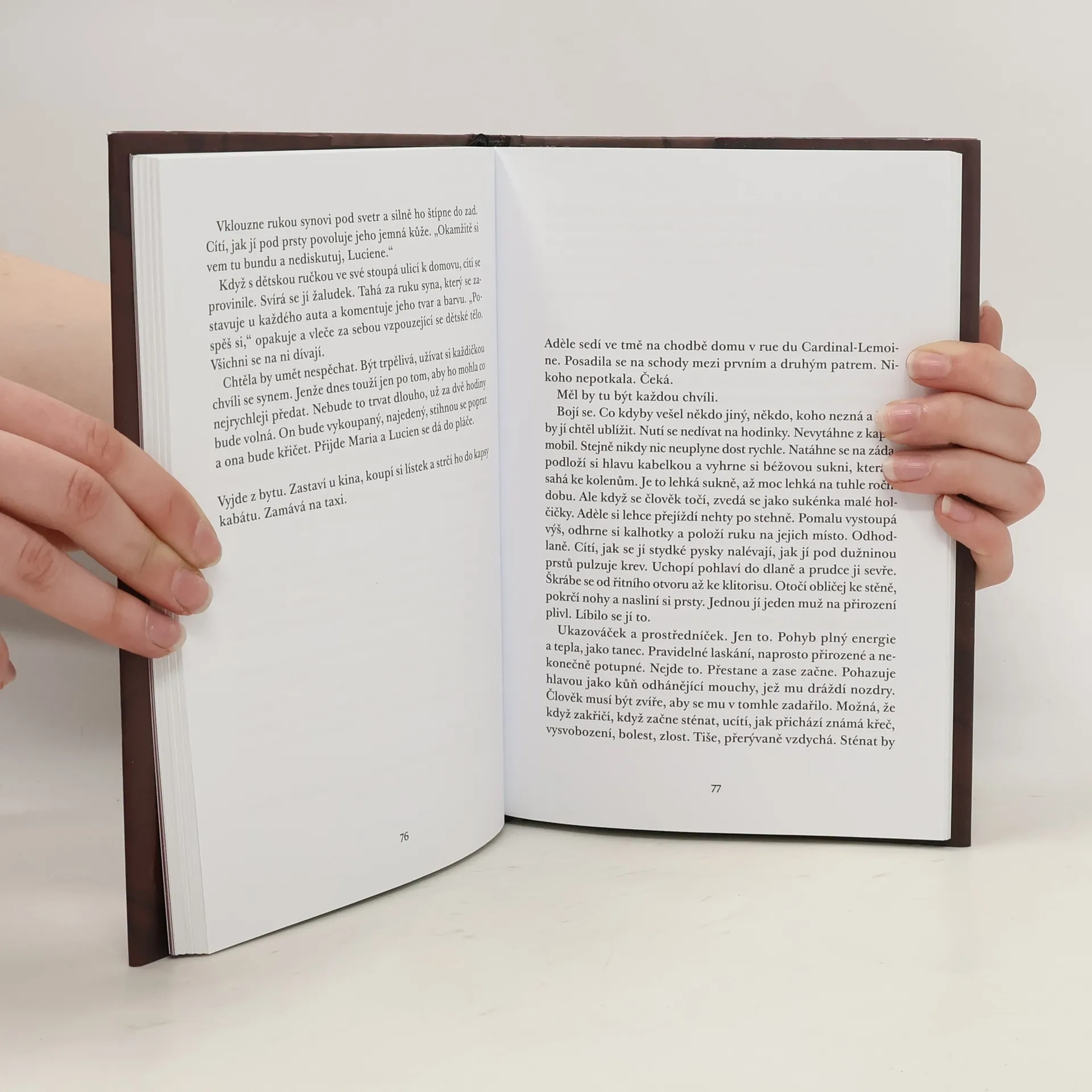 Je mladá, krásná, úspěšná. Má zajímavou práci novinářky, milujícího manžela a roztomilého synka. Tak proč ty stále hlubší kruhy pod očima? Adele Robinsonová, tajemná antihrdinka Leily Slimaniové, neuroticky podvádějící manžela, kdykoli se jí naskytne příležitost, je žena s nejasnou diagnózou. Zmítaná mezi neustálým strachem a chorobnou touhou po uznání, vůlí vzepřít se nástrahám a slastí jim podlehnout, potácí se mezi pohodlím měšťáckého života, které potřebuje, ačkoli jím pohrdá, a obsesivní nezřízeností, která ji zraňuje.