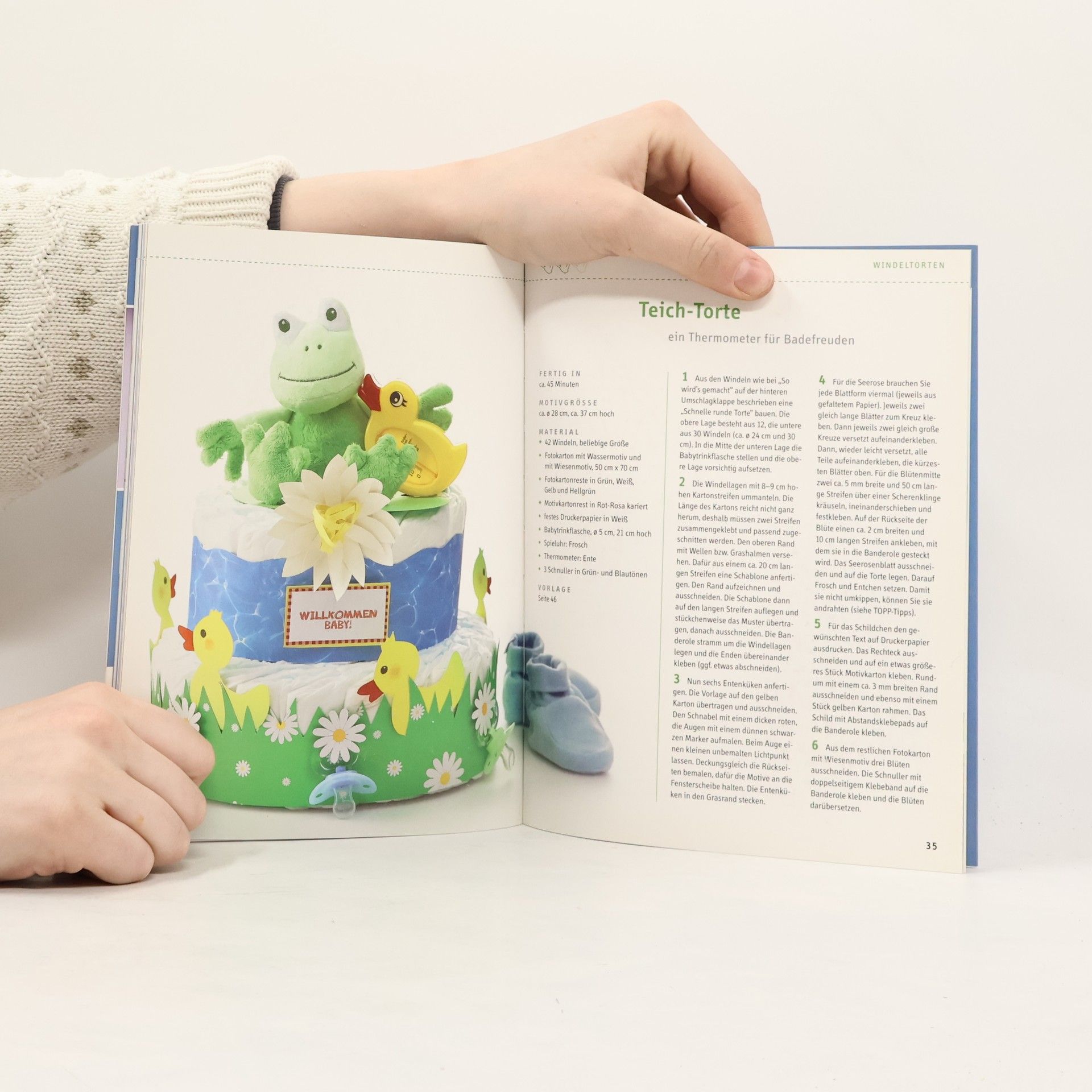 Wunderbare Windeltorten. Geschenke zu Babyparty, Geburt und Taufe. Die schönsten Windeltorten zum neuen Babyparty-Trend. Kleine Geschenke für Baby, Mama und Papa liebevoll integriert. Mit Serviceteil zu Windelgrößen, Erstausstattung, Babypartys und mehr. Kreativ-Paperback, 48 Seiten, 17 x 22 cm, Umschlagklappen