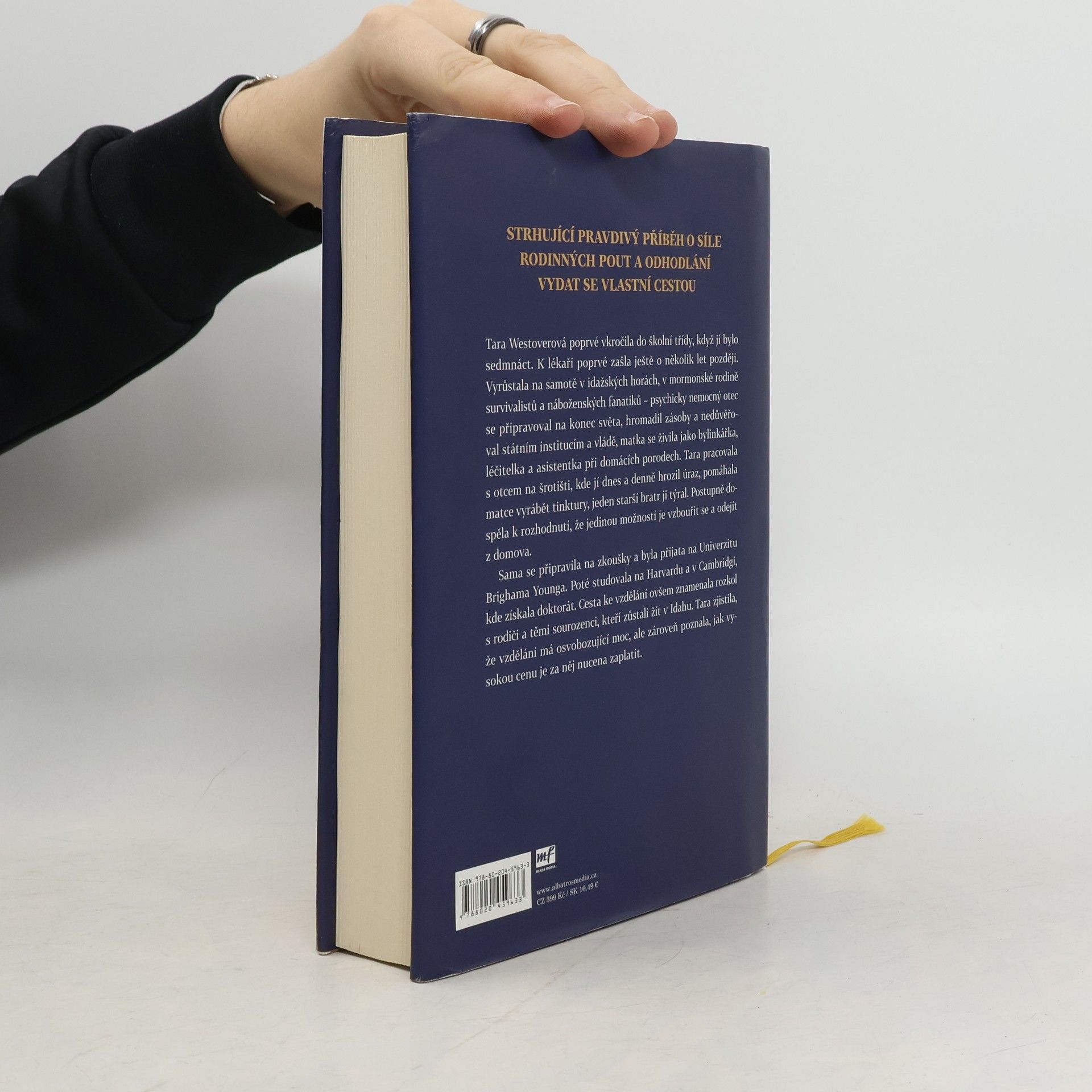 Strhující pravdivý příběh o síle rodinných pout a odhodlání vydat se vlastní cestou. Tara Westoverová poprvé vkročila do školy, když jí bylo sedmnáct. Vyrůstala na samotě v rodině survivalistů a náboženských fanatiků a až v dospívání našla odvahu hledat si vlastní cestu. Studovala na Harvardu a v Cambridgi a zjistila, že vzdělání má osvobozující moc, ale že za něj bude muset zaplatit vysokou cenu.