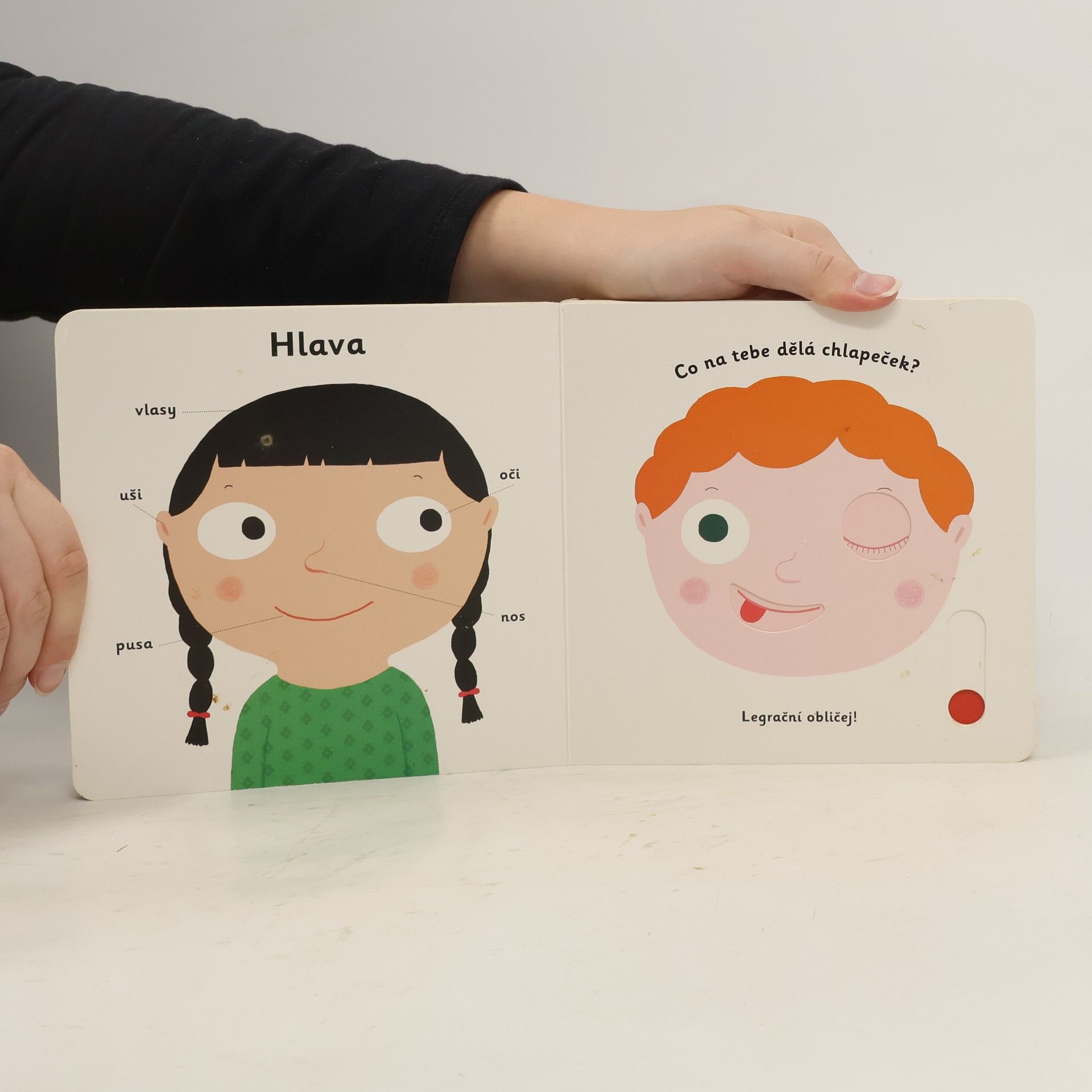 Objevovat svět lidského těla s tímto leporelem je tak zábavné! Co všechno přes den děláš? Kdo si hraje na dětském hřišti? Komu dává chlapeček pusinku? Stačí jen vložit prstík do správného otvoru a lehce vysunout, zatáhnout nebo otočit ve směru šipky a hned bude váš malý objevitel znát odpovědi. Leporelo je určeno pro nejmenší děti od jednoho roku a má pevné stránky s posuvnými a otočnými prvky, a tak si naši nejmenší mohou při prohlížení a učení jednotlivých částí těla, pojmenovávání pocitů a mnoha dalšího procvičit i jemnou motoriku.