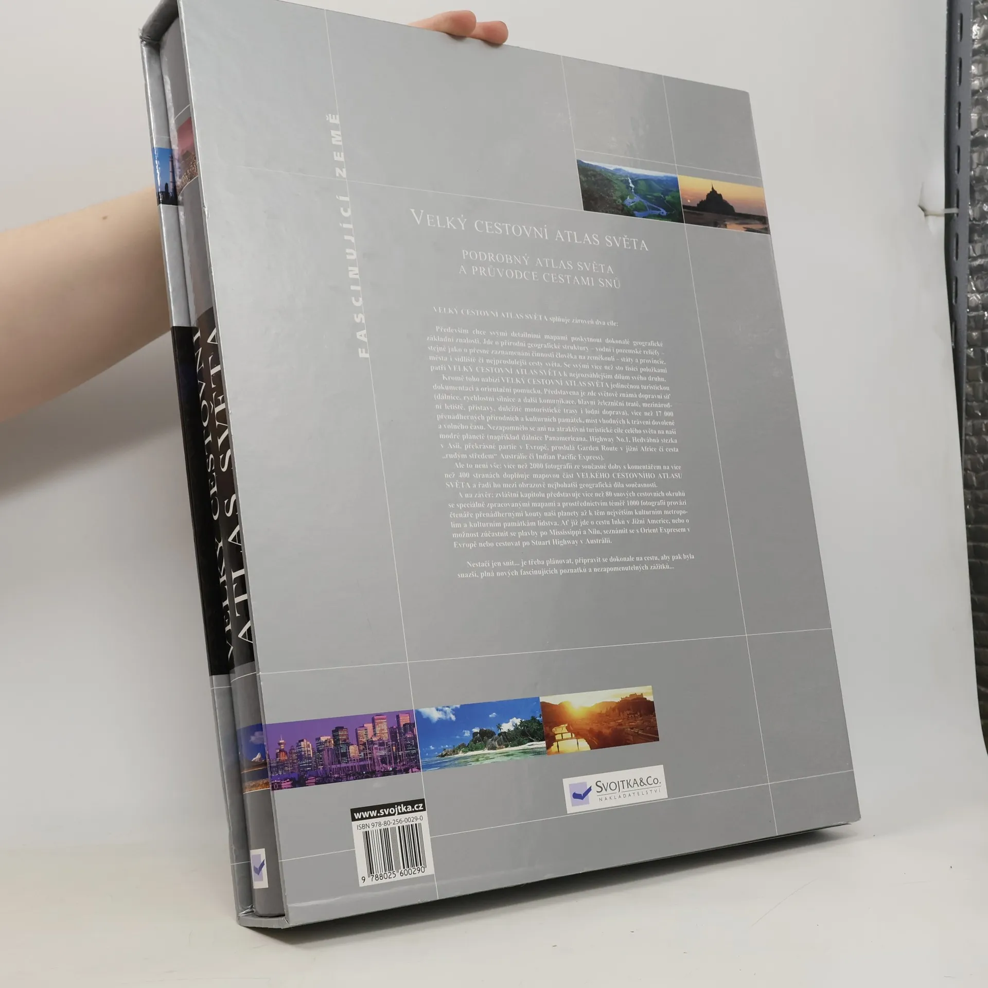 PODROBNÝ ATLAS SVĚTA A PRŮVODCE CESTAMI SNŮ splňuje dva cíle: poskytuje detailní geografické znalosti a slouží jako turistická dokumentace. Obsahuje přírodní geografické struktury, jako jsou vodní toky a reliéfy, a také lidské aktivity na Zemi, včetně států, měst a nejznámějších cest. S více než sto tisíci položkami patří k nejrozsáhlejším atlasům svého druhu. Dále nabízí unikátní turistické informace, včetně světově známé dopravní sítě (dálnice, železniční tratě, letiště, přístavy) a více než 17 000 přírodních a kulturních památek. Zahrnuje atraktivní turistické trasy, jako jsou dálnice Panamericana, Hedvábná stezka, Gerden Route a další. Navíc je doplněn více než 2000 současnými fotografiemi a komentáři na více než 300 stranách, což ho činí jedním z nejbohatších obrazových geografických děl. Zvláštní kapitola se věnuje více než 80 snovým cestovním okruhům s mapami a téměř 1000 fotografiemi, které čtenáře provádějí nádhernými kouty planety a kulturními metropolemi. Ať už jde o cestu Inků, plavbu po Mississippi, jízdu Orient Expressem nebo Stuart Highway, tento atlas nabádá k plánování a přípravě na cesty, aby zážitky byly nezapomenutelné.