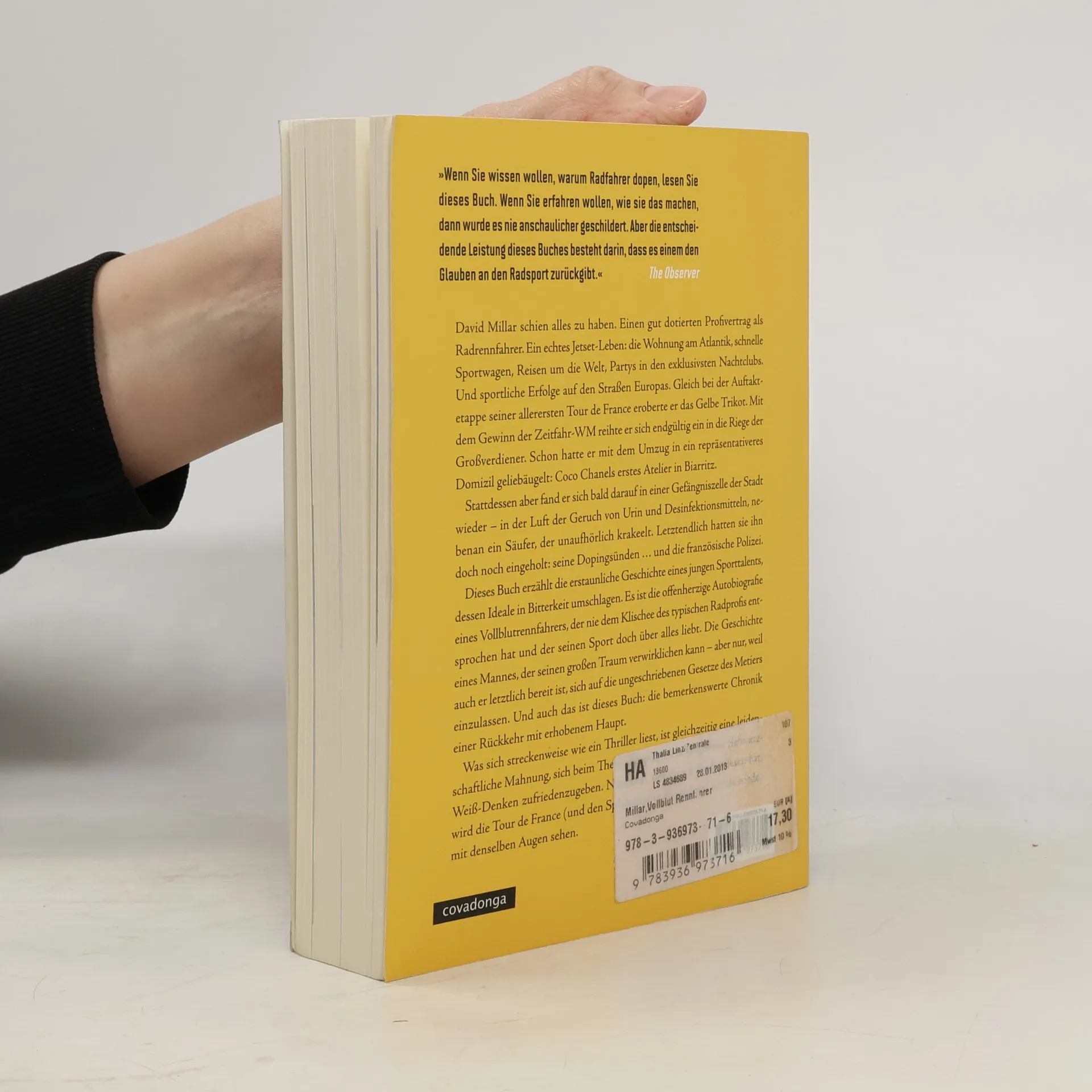 David Millar schien alles zu haben: einen lukrativen Profivertrag als Radrennfahrer, ein Jetset-Leben mit einer Wohnung am Atlantik, schnellen Sportwagen und Reisen um die Welt. Er feierte sportliche Erfolge, eroberte das Gelbe Trikot bei seiner ersten Tour de France und gewann die Zeitfahr-WM, was ihn in die Riege der Großverdiener katapultierte. Doch bald fand er sich in einer Gefängniszelle wieder, umgeben von dem Geruch von Urin und Desinfektionsmitteln, nachdem ihn seine Dopingsünden und die französische Polizei eingeholt hatten. Nur wenige Monate zuvor stand er noch auf dem Podium der WM in Kanada, mit einer Goldmedaille um den Hals, doch fühlte er nichts als Leere. Die verbotenen Mittel hatten seinen Körper verlassen, aber die Saat seines Untergangs war bereits gelegt. Diese Autobiografie erzählt die erstaunliche Geschichte eines Sporttalents, dessen Ideale in Bitterkeit umschlagen. Millar entspricht nicht dem Klischee des typischen Radprofis und liebt seinen Sport über alles. Es ist die Geschichte eines Mannes, der seinen Traum verwirklicht, indem er sich den ungeschriebenen Gesetzen des Metiers fügt. Gleichzeitig ist es eine leidenschaftliche Mahnung, beim Thema Doping nicht in Schwarz-Weiß-Denken zu verfallen. Leser werden die Tour de France und den Spitzensport mit neuen Augen sehen.