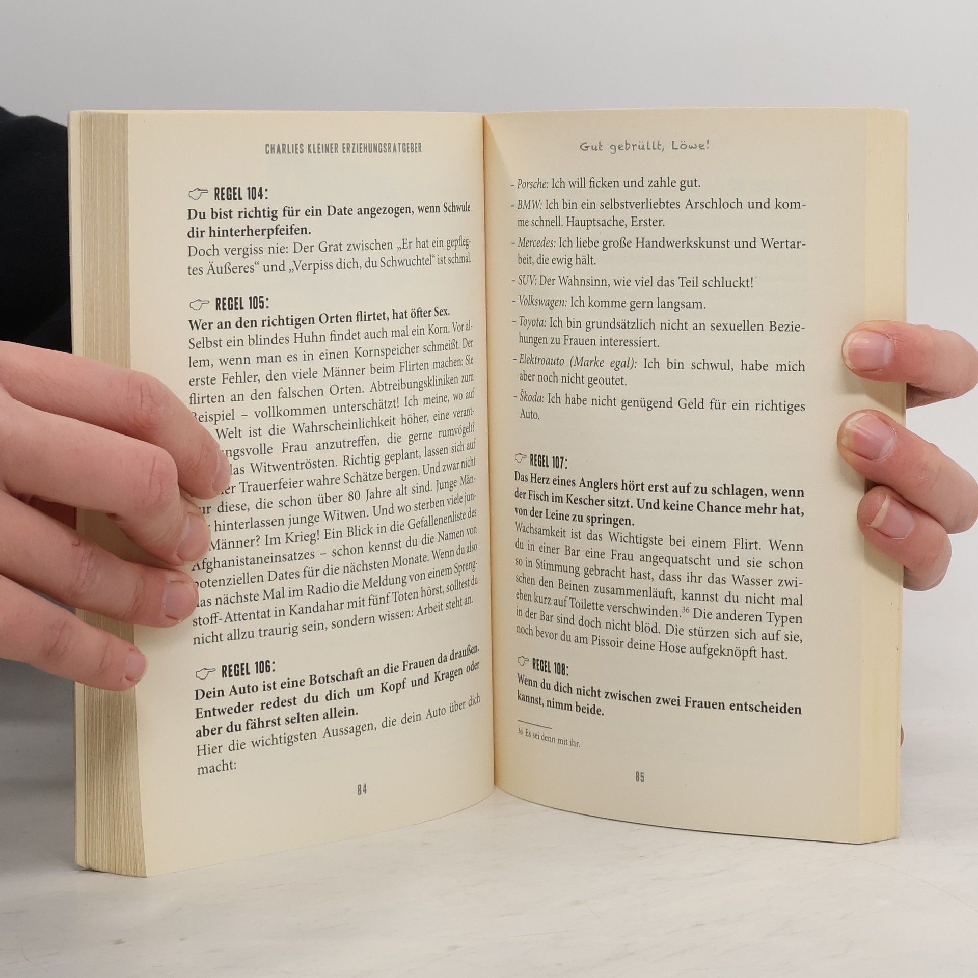 Charlie Sheen spielte von 2003 bis 2012 die Figur des Frauenhelds und Gewohnheitstrinkers Charlie Harper in der internationalen TV-Hit-Serie Two and a Half Men – also eigentlich sich selbst. Obwohl er so überhaupt nichts mit Kindern am Hut hat, kümmert er sich um seinen Neffen Jake – aber nicht auf pädagogisch wertvolle Art und Weise. In diesem Stil ist auch dieser Erziehungsratgeber geschrieben – eine Empfehlung des Kinderschutzbundes wird er dafür wohl nicht bekommen. Charlie gibt wertvolle Empfehlungen, wie man in einer Tabledance-Bar oder bei Prostituierten bezahlt, wie man effektiv mit einer Frau Schluss macht, was im Umgang mit Viagra zu beachten ist und viele wichtige Aspekte mehr, die echte Männer im Umgang mit ihrem Nachwuchs beachten sollten. Ein Erziehungsratgeber, der politisch mehr als unkorrekt ist und Charlies Geist auch nach dessen Ausstieg aus der Serie weiterleben lässt.