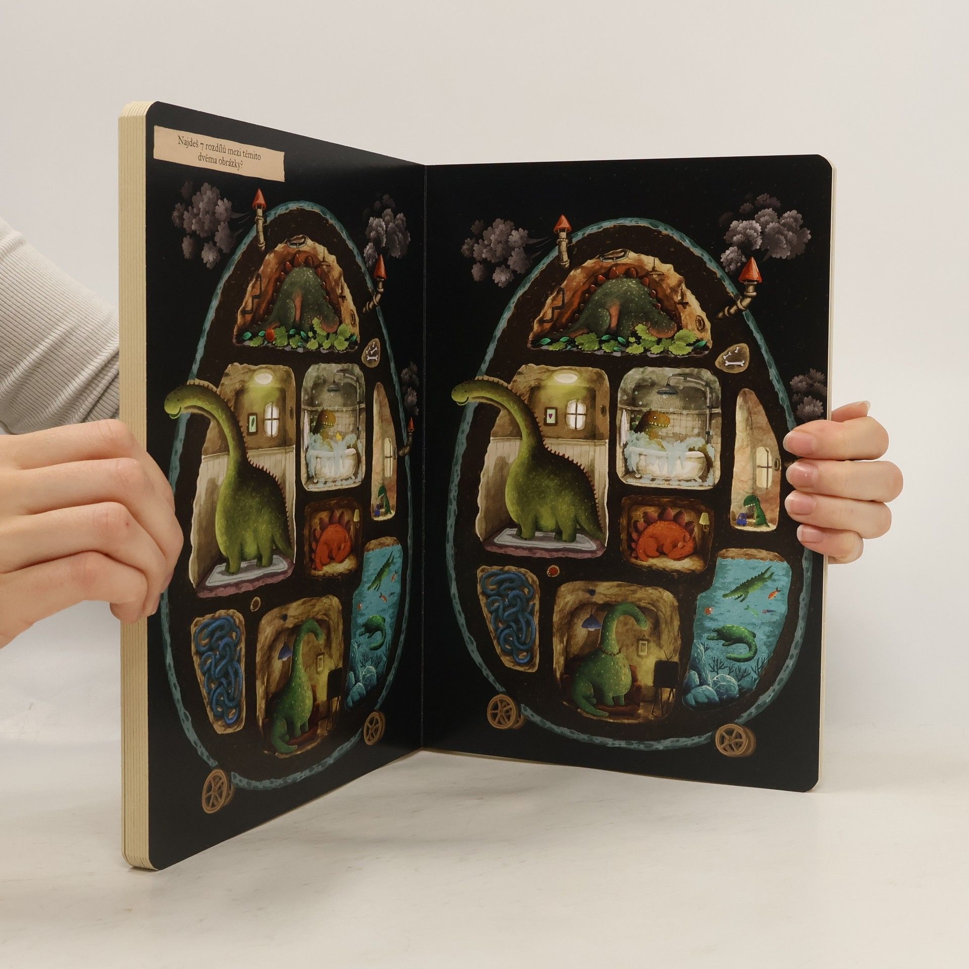 Nerozlučná dvojice kamarádů Vousáč a švábice se vydávají na cestu časem. Je to povedená dvojice – představte si pračlověka a švábí dámu, kteří zabloudí do země dinosaurů. Chudáčci, jsou z těch velkých obrů celí paf, postupně se ale dozvídají spoustu zajímavých, úžasných poznatků o podivuhodných bytostech, kteří – musí uznat – jsou docela sympaťáci. Zábavné a naučné leporelo je určeno dětem od 2 do šesti let.