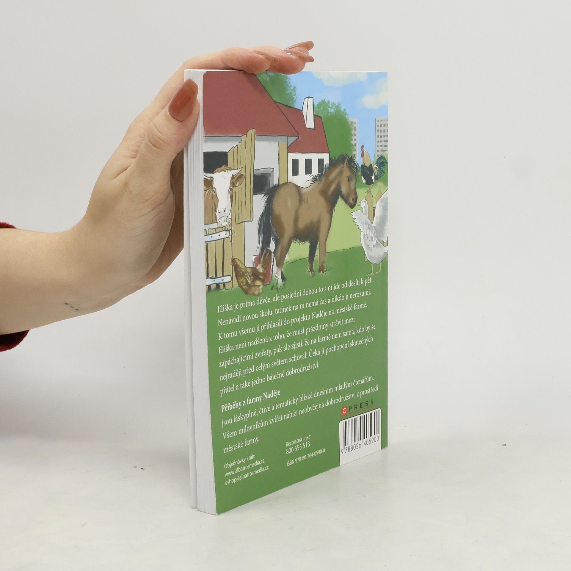 Příběhy z farmy Naděje. Eliška je prima děvče, ale poslední dobou to s ní jde od desíti k pěti. Nenávidí novou školu, tatínek na ní nemá čas a nikdo jí nerozumí. K tomu všemu ji přihlásili do projektu Naděje na městské farmě. Eliška není nadšená z toho, že musí prázdniny strávit mezi zapáchajícími zvířaty, pak ale zjistí, že na farmě není sama, kdo by se nejraději před celým světem schoval. Čeká ji pochopení skutečných přátel a také jedno báječné dobrodružství. Příběhy z farmy Naděje jsou láskyplné, čtivé a tematicky blízké dnešním mladým čtenářům. Nejen milovníkům zvířat nabízí neobyčejná dobrodružství z prostředí městské farmy.