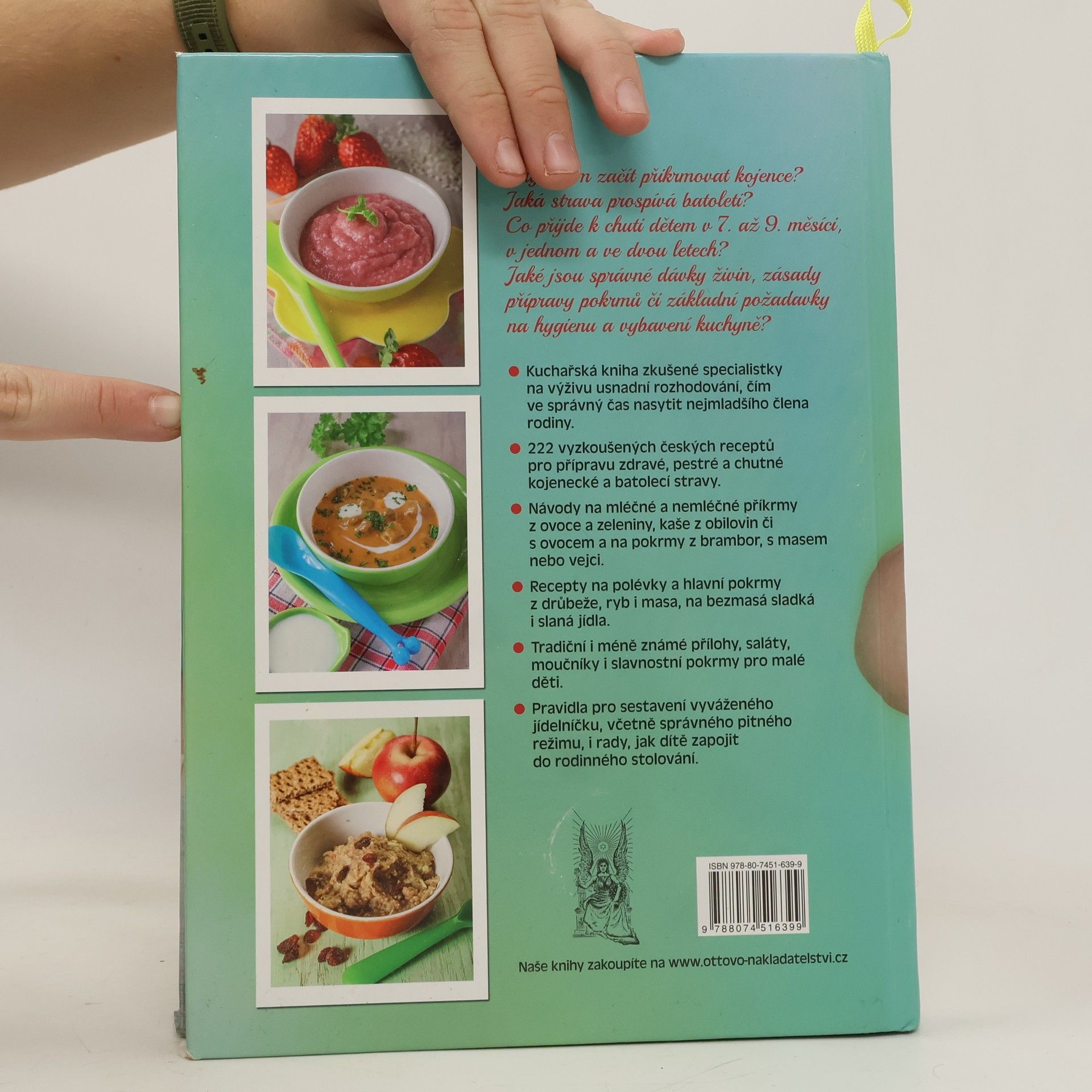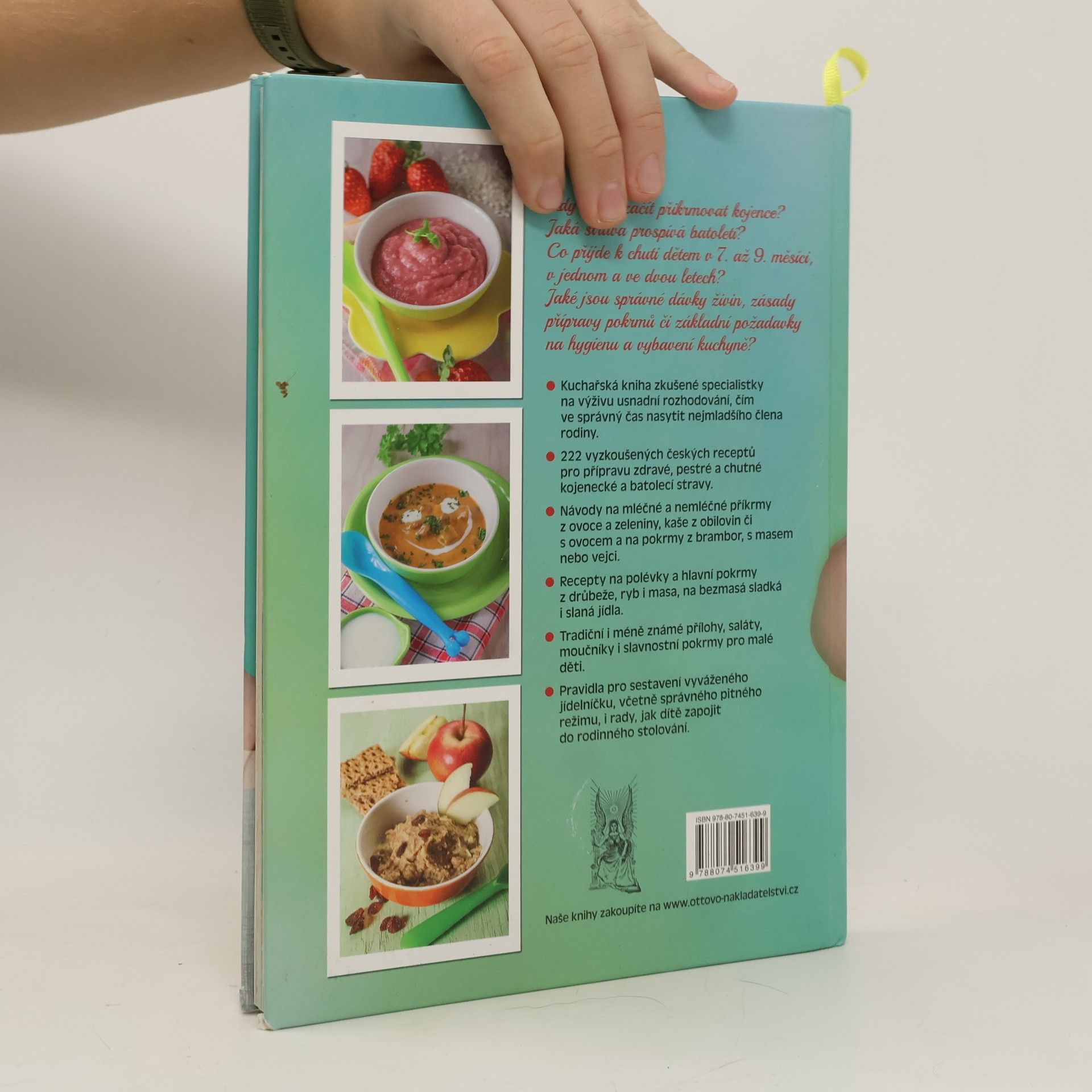 Kdy a čím začít přikrmovat kojence? Jaká strava prospívá batoleti? Co přijde k chuti dětem v 7. až 9. měsíci, v jednom a dvou letech? Jaké jsou správné dávky jednotlivých živin, zásady přípravy pokrmů či základní požadavky na hygienu a vybavení kuchyně? Odpovědi na tyto otázky spolu s více než dvěma stovkami vyzkoušených receptů usnadní maminkám rozhodování, čím ve správný čas nasytit nejmladšího člena rodiny. Kuchařská kniha zkušené specialistky na výživu je rozdělena do dvou základních oddílů věnovaných kojenecké a batolecí stravě. Nabízí návody na mléčné a nemléčné příkrmy z ovoce a zeleniny, kaše z obilovin či s ovocem a pokrmy z brambor, s masem či vejci. Recepty na polévky a hlavní pokrmy z drůbeže, ryb i masa nebo bezmasá sladká i slaná jídla doplňují oddíly věnované přílohám, salátům, moučníkům a slavnostním pokrmům. Najdete v ní také základní pravidla pro sestavení zdravého, pestrého a chutného jídelníčku včetně správného pitného režimu i rady, jak dítě zapojit do rodinného stolování.