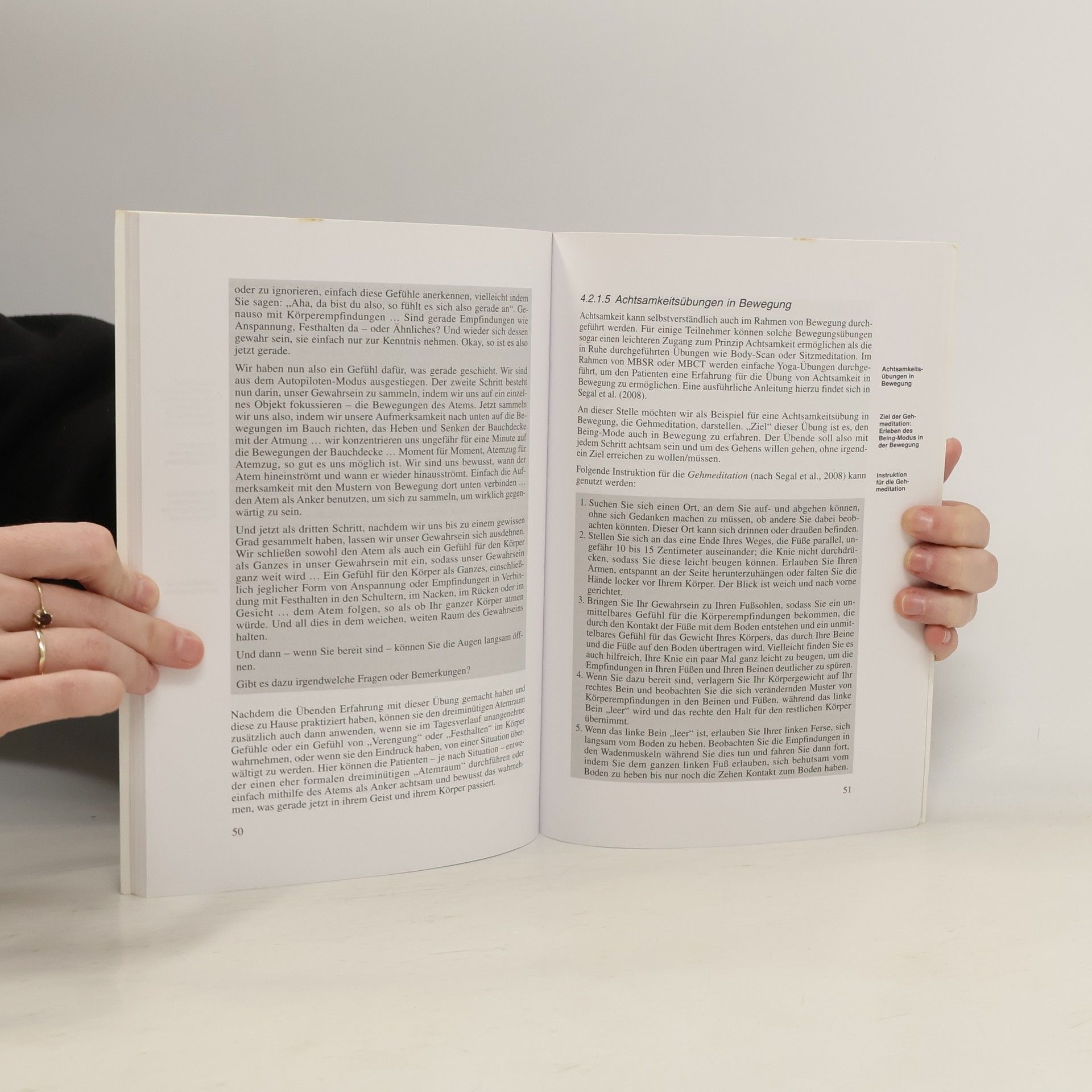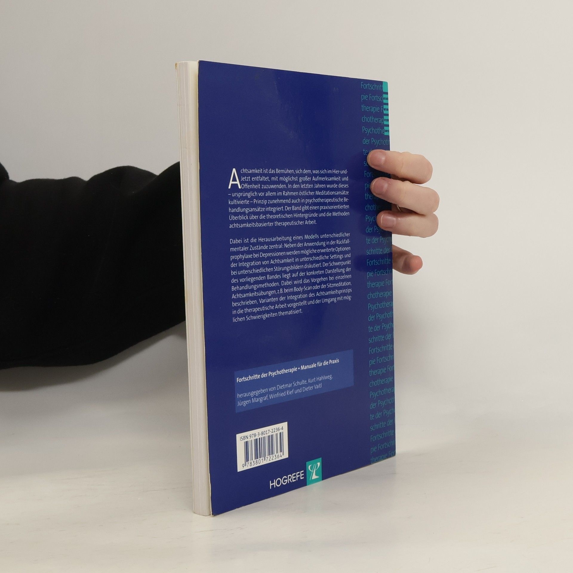 Achtsamkeit ist das Bemühen, sich dem, was sich im Hier-und-Jetzt entfaltet, mit möglichst großer Aufmerksamkeit und Offenheit zuzuwenden. In den letzten Jahren wurde dieses – ursprünglich vor allem im Rahmen östlicher Meditationsansätze kultivierte – Prinzip zunehmend auch in psychotherapeutische Behandlungsansätze integriert. Der Band gibt einen praxisorientierten Überblick über die theoretischen Hintergründe und die Methoden achtsamkeitsbasierter therapeutischer Arbeit. Dabei ist die Herausarbeitung eines Modells unterschiedlicher mentaler Zustände zentral: Neben der Anwendung in der Rückfallprophylaxe bei Depressionen werden mögliche erweiterte Optionen der Integration von Achtsamkeit in unterschiedliche Settings und bei unterschiedlichen Störungsbildern diskutiert. Der Schwerpunkt des vorliegenden Bandes liegt auf der konkreten Darstellung der Behandlungsmethoden. Dabei wird das Vorgehen bei einzelnen Achtsamkeitsübungen, z. B. beim Body-Scan oder der Sitzmeditation, beschrieben, Varianten der Integration des Achtsamkeitsprinzips in die therapeutische Arbeit vorgestellt und der Umgang mit möglichen Schwierigkeiten thematisiert.