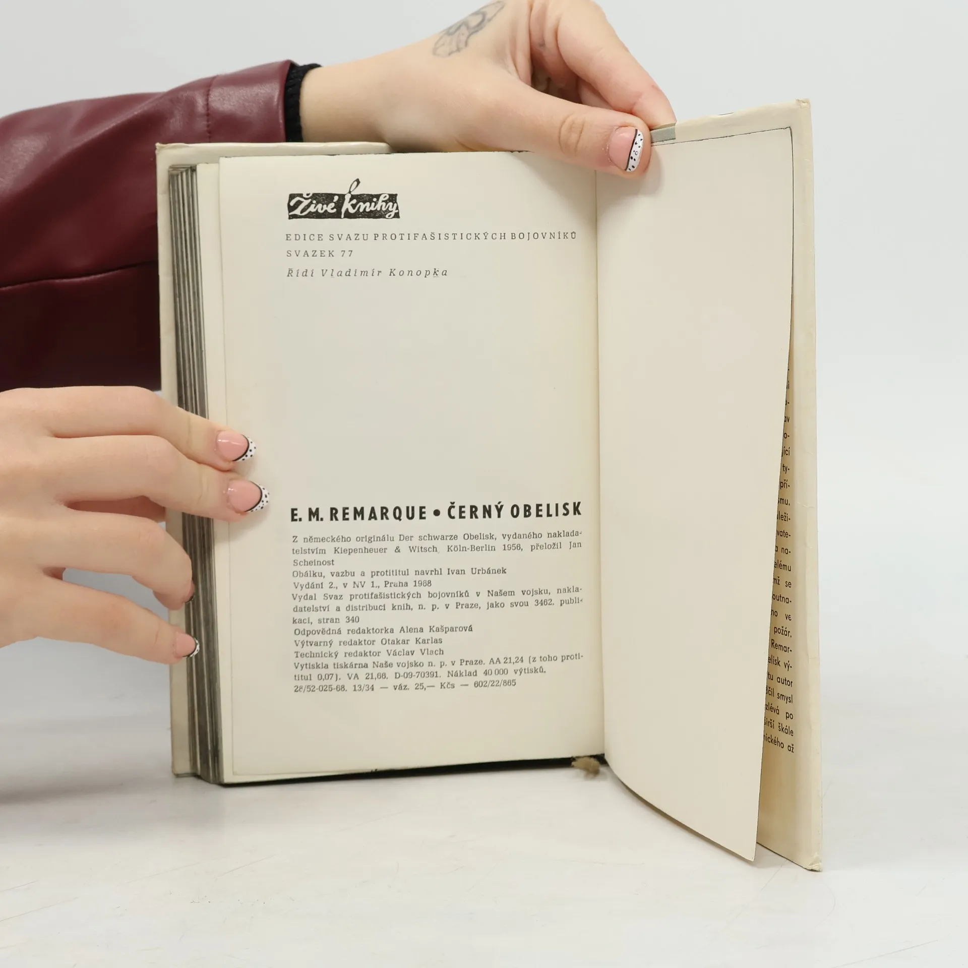 Na rozdíl od ostatních Remarquových knih je v této knize atmosféra, i přes nepříznivost doby, tak nějak odlehčena sarkastickým humorem hlavní postavy, střídající se s hlubokým filozofováním o smyslu života. V knize se, jak je u Remarqua zvykem, odráží nejen osudy postav, ale také společenská a politická situace v tamním Německu. Za mě vedle Jiskry života a Na západní frontě klid, jedna z nejlepších autorových knih.
