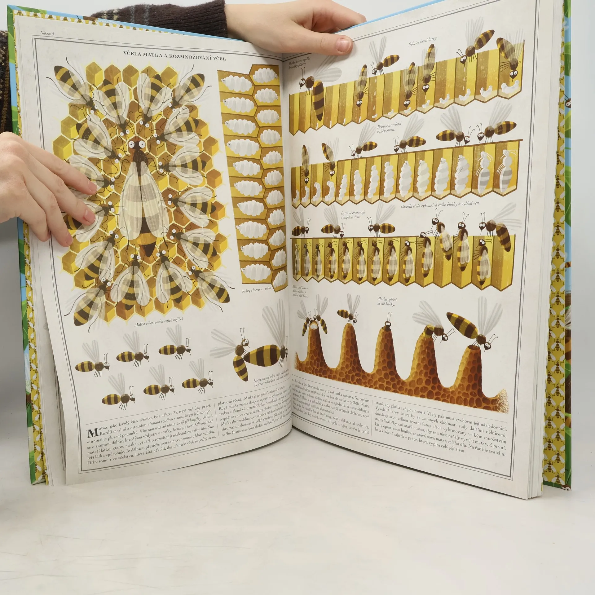 Přijměte pozvání do kouzelného království včel! Podívejte se zblízka, jak vypadají, nahlédněte do jejich domova, seznamte se s jejich zvyky. Sledujte, jak tančí, a odhalte, kdy a proč to dělají. Zjistěte, proč se ocitly na Napoleonově plášti a jakým způsobem vědci přišli na to, že včely byly na světě dřív než dinosauři. Vyzkoušejte si práci po boku včelaře, vydejte se s úly autem do mandloňového sadu, ochutnejte různé druhy medu. Jen dejte pozor, ať vás nepobodají!