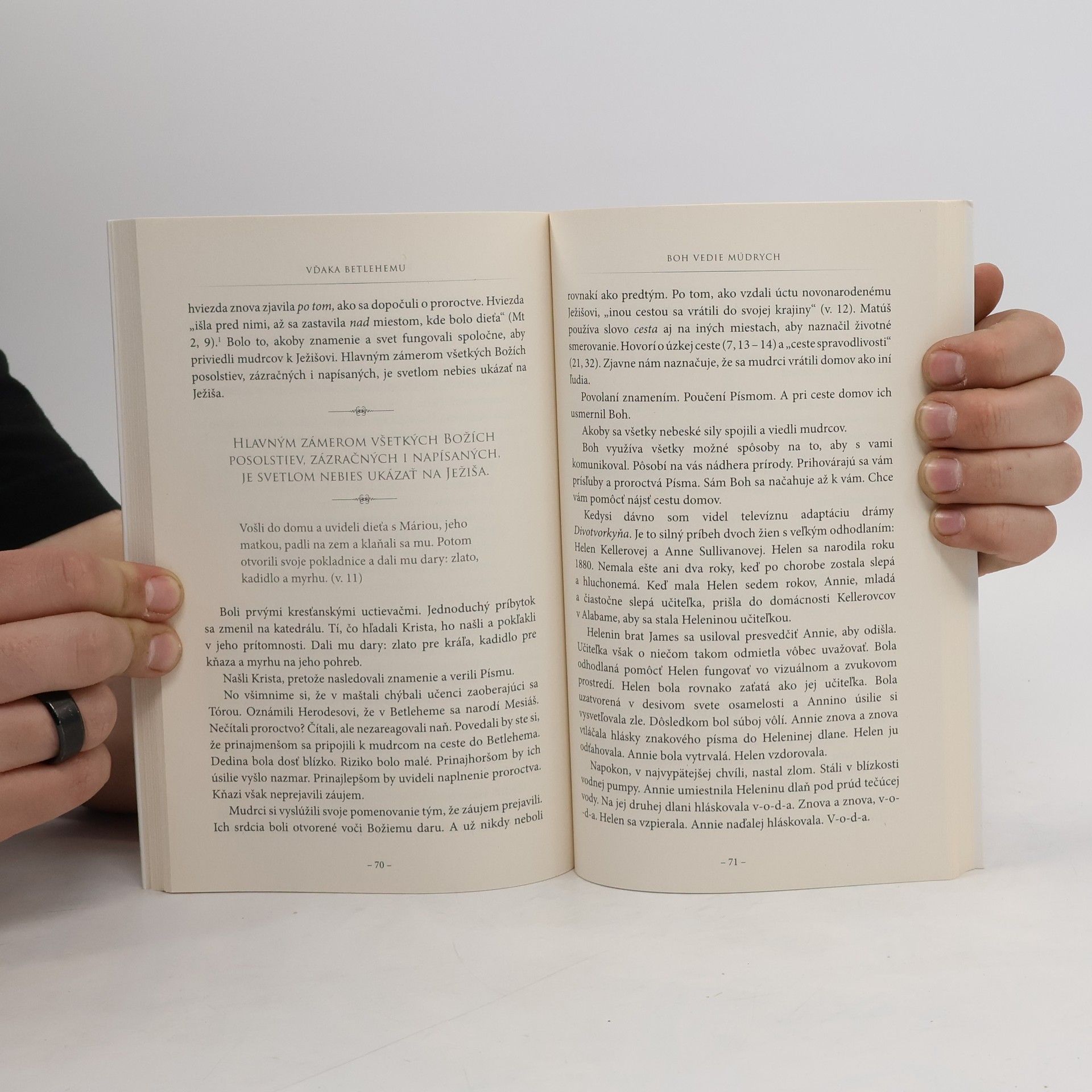 Milujem Vianoce. Nech potešia nás zvonce saní! A večer skrásnie koledami! Nech Santovia nás rozradostia! A schádzajú sa doma hostia! Milujem Vianoce. Milujem ich, pretože niekde niekto položí vianočnú otázku: Prečo je dieťatko v maštali také dôležité? Kto to bol? Čo má jeho narodenie spoločné so mnou? A mám rád odpovede, ku ktorým som dospel. Napríklad túto: Boh vie, aké je byť človekom. Keď mu hovorím o redakčných uzávierkach, dlhom čakaní či ťažkých časoch, chápe to. Je tam. A je aj tu. Vďaka Betlehemu mám v nebi priateľa. A túto: Vianocami sa začína to, čo oslavujeme počas Veľkej noci. Dieťa v kolíske sa stalo Kráľom na kríži. Vďaka Betlehemu máme v nebi Spasiteľa. Vianočné prísľuby formujú naše srdcia. Dlho po tom, ako odídu hostia, koledníci sa vrátia domov a zhasnú svetlá, tieto prísľuby pretrvávajú. Zažnime lampu, schúľme sa na pohodlné miesto a ponorme sa do zvláštneho, nádherného betlehemského príbehu. Možno nájdete to, čo som našiel ja: celoživotnú nádej.