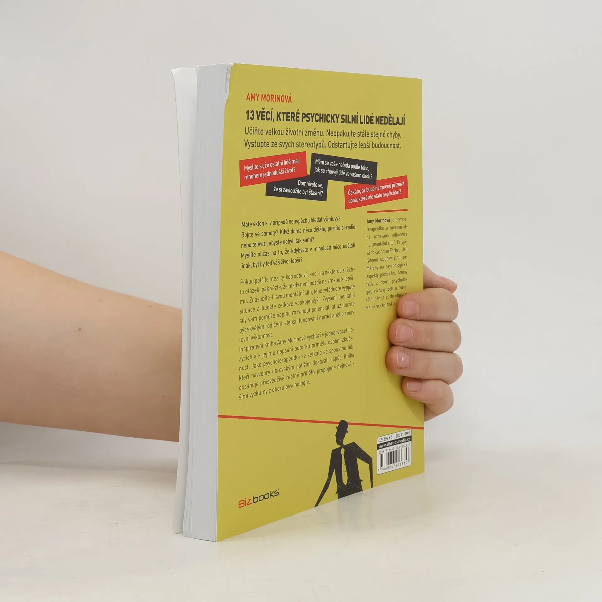 Učiňte velkou životní změnu. Neopakujte stále stejné chyby. Vystupte ze svých stereotypů. Odstartujte lepší budoucnost. Máte sklon si v případě neúspěchu hledat výmluvy? Bojíte se samoty? Když doma něco děláte, pustíte si rádio nebo televizi, abyste nebyli tak sami? Myslíte občas na to, že kdybyste v minulosti něco udělali jinak, byl by teď váš život lepší? Pokud patříte mezi ty, kdo odpoví „ano“ na některou z těchto otázek, pak vězte, že nikdy není pozdě na změnu k lepšímu. Znásobíte-li svou mentální sílu, lépe zvládnete vypjaté situace a budete celkově spokojenější. Zvýšení mentální síly vám pomůže naplno rozvinout potenciál, ať už toužíte být skvělým rodičem, zlepšit fungování v práci anebo sportovní výkonnost. Inspirativní kniha Amy Morinové vychází v jednadvaceti jazycích a k jejímu napsání autorku přiměla osobní zkušenost. Jako psychoterapeutka se setkala se spoustou lidí, kteří navzdory obrovským potížím dokázali uspět. Kniha obsahuje přesvědčivé reálné příběhy propojené nejnovějšími výzkumy z oboru psychologie. Amy Morinová je psychoterapeutka a mezinárodně uznávaná odbornice na „mentální sílu“. Přispívá do časopisu Forbes. Její týdenní sloupky jsou zaměřeny na psychologické aspekty podnikání. Aminy rady z oboru psychologie, výchovy dětí a mentální síly se často objevují v americkém tisku.