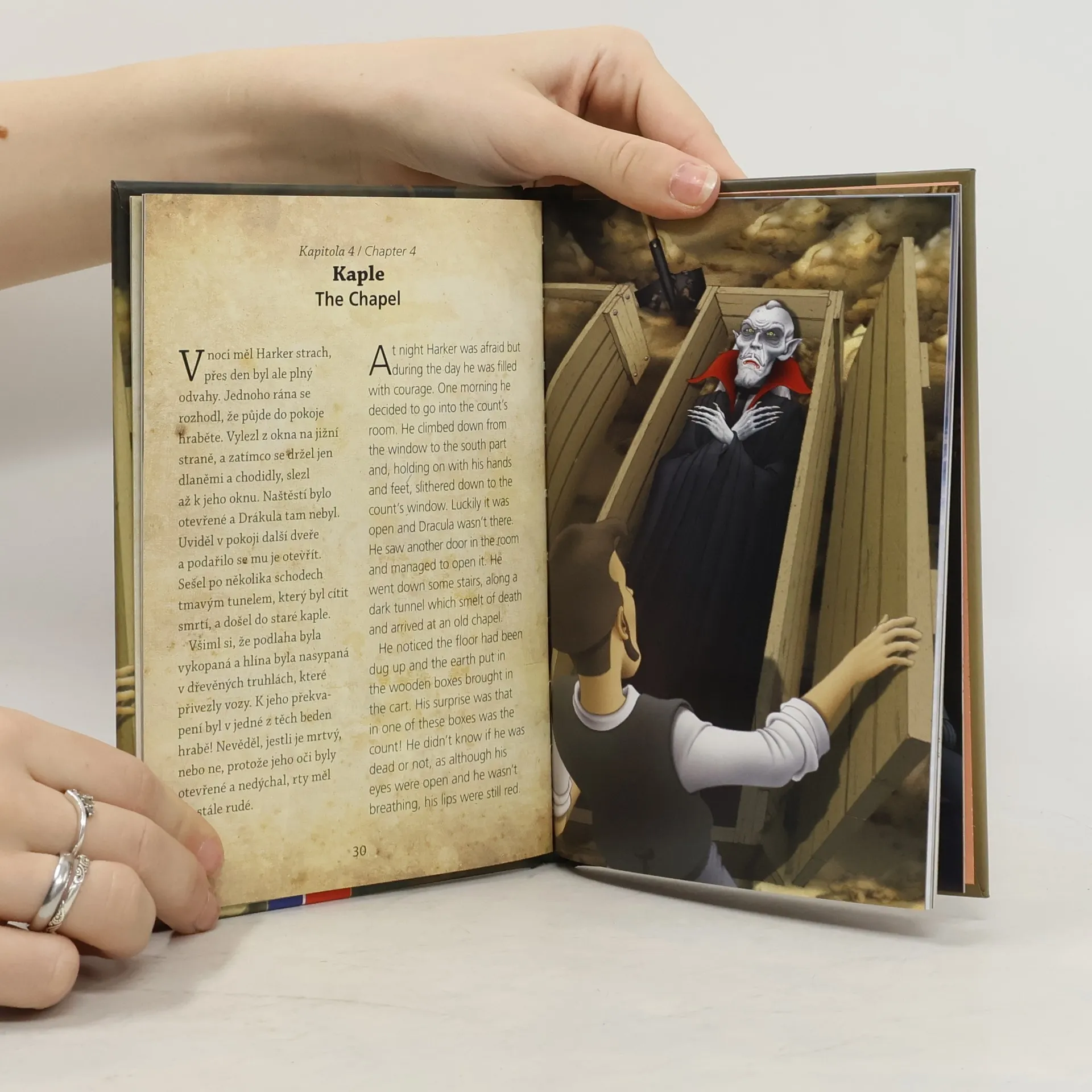 Dvojjazyčná verze známého příběhu o hraběti Drákulovi.