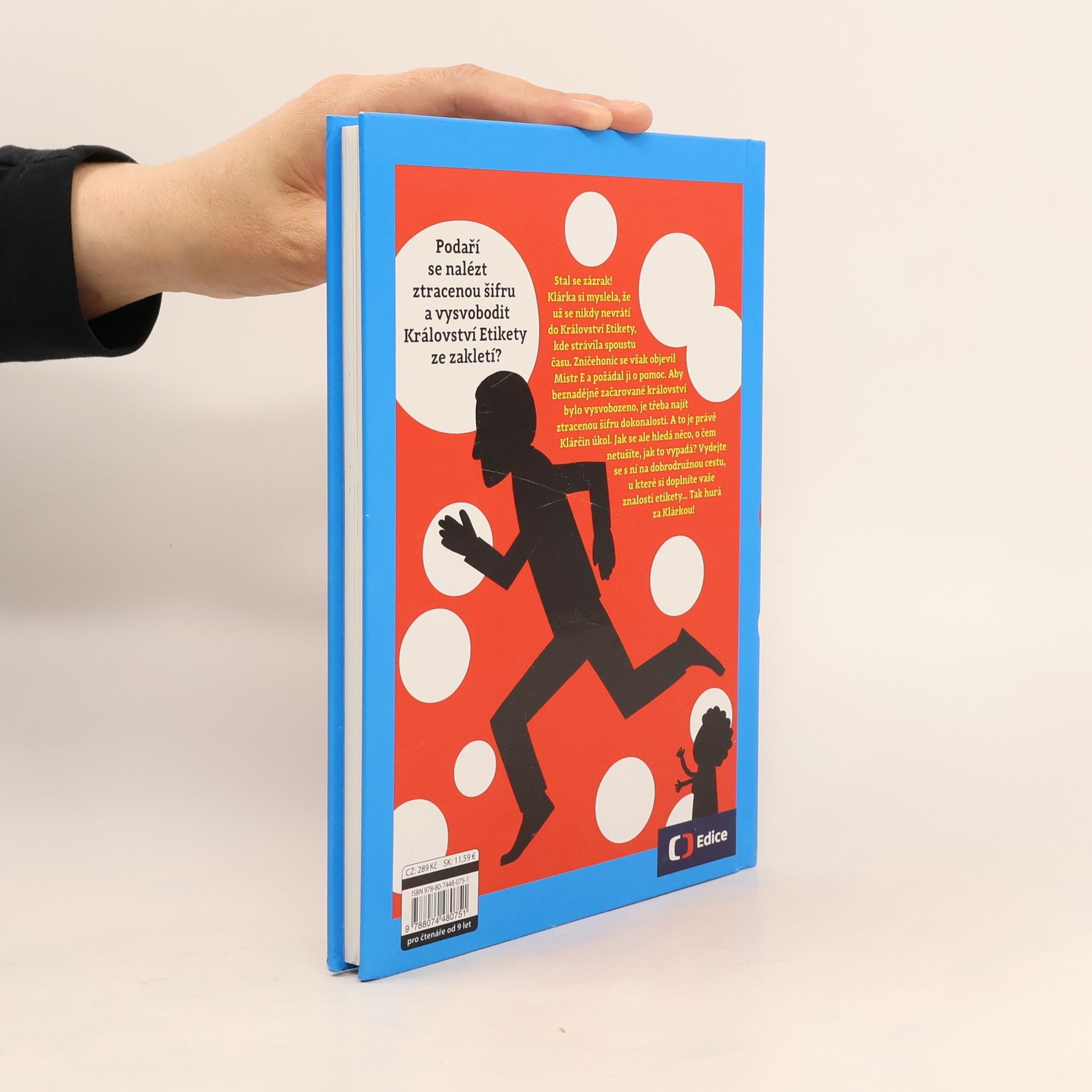 Stal se zázrak! Klárka si myslela, že už se nikdy nevrátí do Království Etikety, kde strávila spoustu času. Zničehonic se však objevil Mistr E a požádal ji o pomoc. Aby beznadějně začarované království bylo vysvobozeno, je třeba najít ztracenou šifru dokonalosti. A to je právě Klárčin úkol. Jak se ale hledá něco, o čem netušíte, jak to vypadá? Vydejte se s ní na dobrodružnou cestu, u které si doplníte vaše znalosti etikety… Tak hurá za Klárkou!
