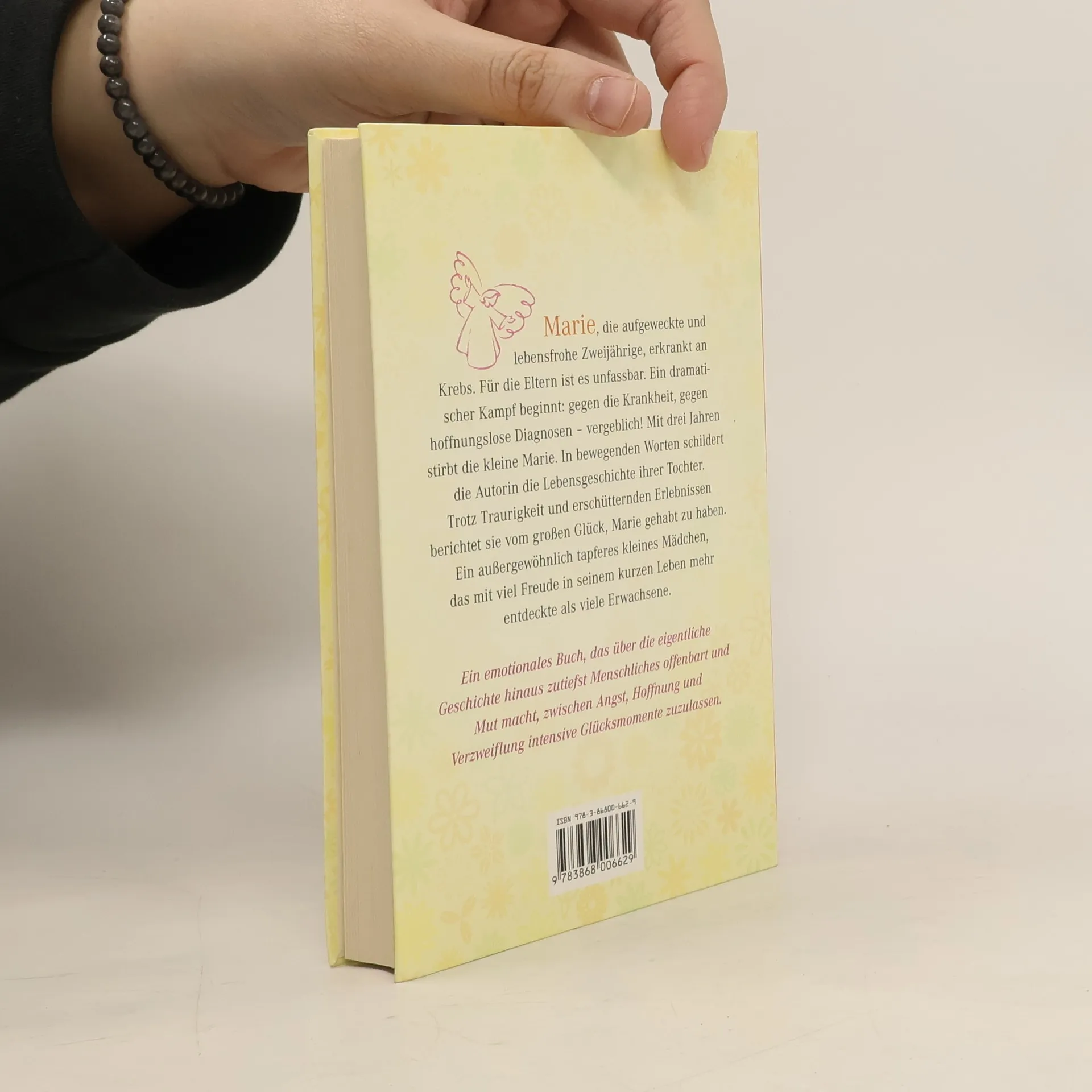 Marie, die aufgeweckte und lebensfrohe Zweijährige, erkrankt an Krebs. Für die Eltern ist es unfassbar. Ein dramatischer Kampf beginnt: gegen die Krankheit, gegen hoffnungslose Diagnosen- vergeblich! Mit drei Jahren stirbt die kleine Marie. In bewegenden Worten schildert die Autorin die Lebensgeschichte ihrer Tochter. Trotz Traurigkeit und erschütternden Erlebnissen berichtet sie vom großen Glück, Marie gehabt zu haben. Ein außergewöhnlich tapferes kleines Mädchen, das mit viel Freude in seinem kurzen Leben mehr entdeckte als viele Erwachsene.Ein emotionales Buch, das über die eigentliche Geschichte hinaus zutiefst Menschliches offenbart und Mut macht, zwischen Angst, Hoffnung und Verzweiflung intensive Glücksmomente zuzulassen.