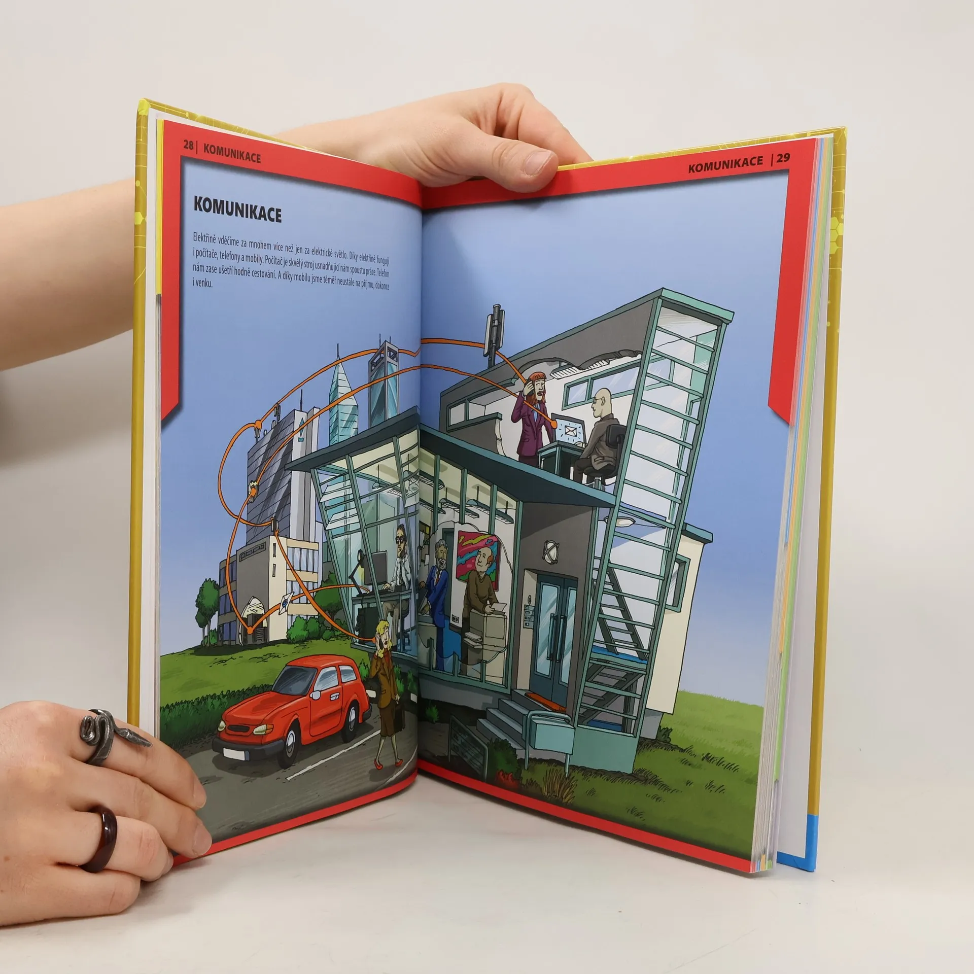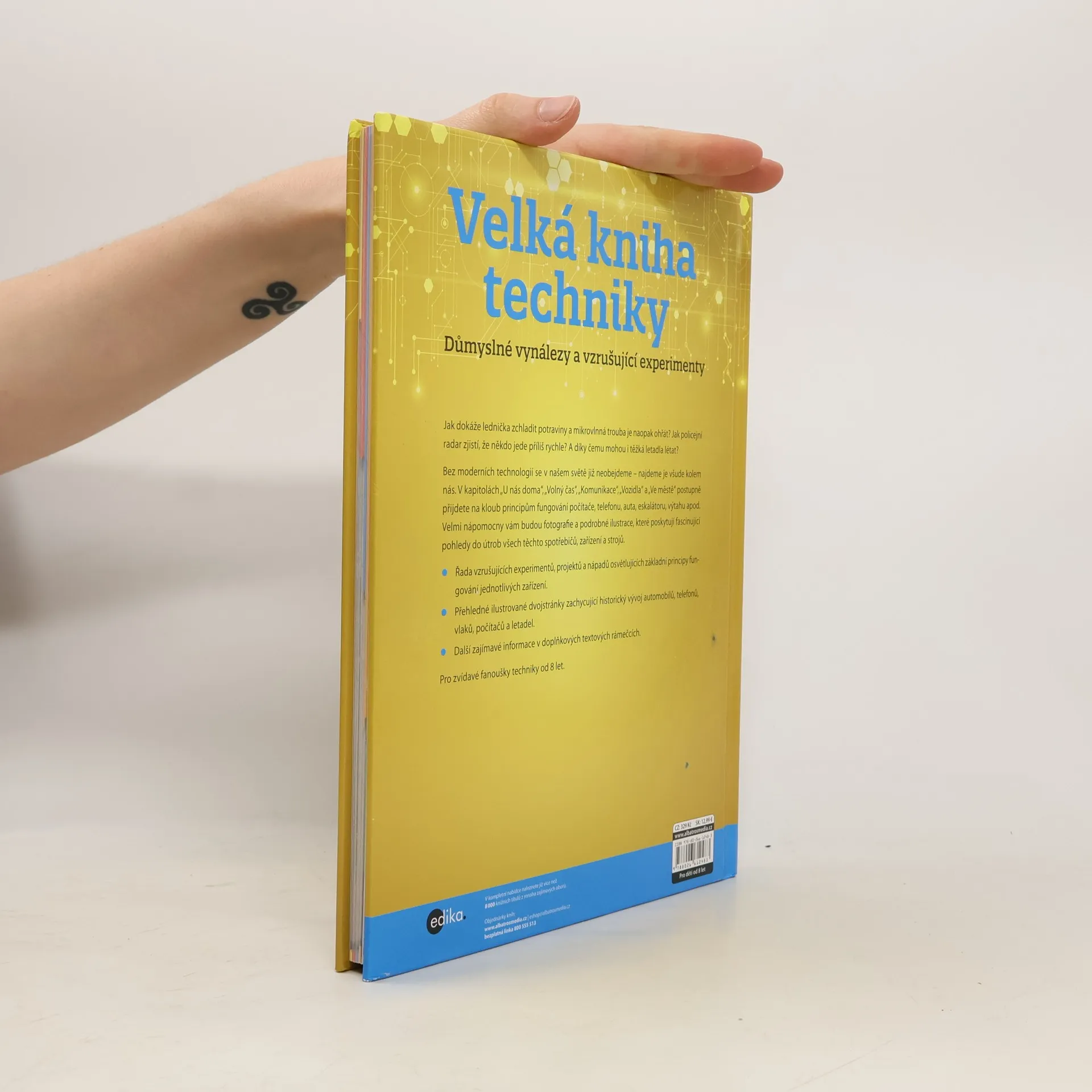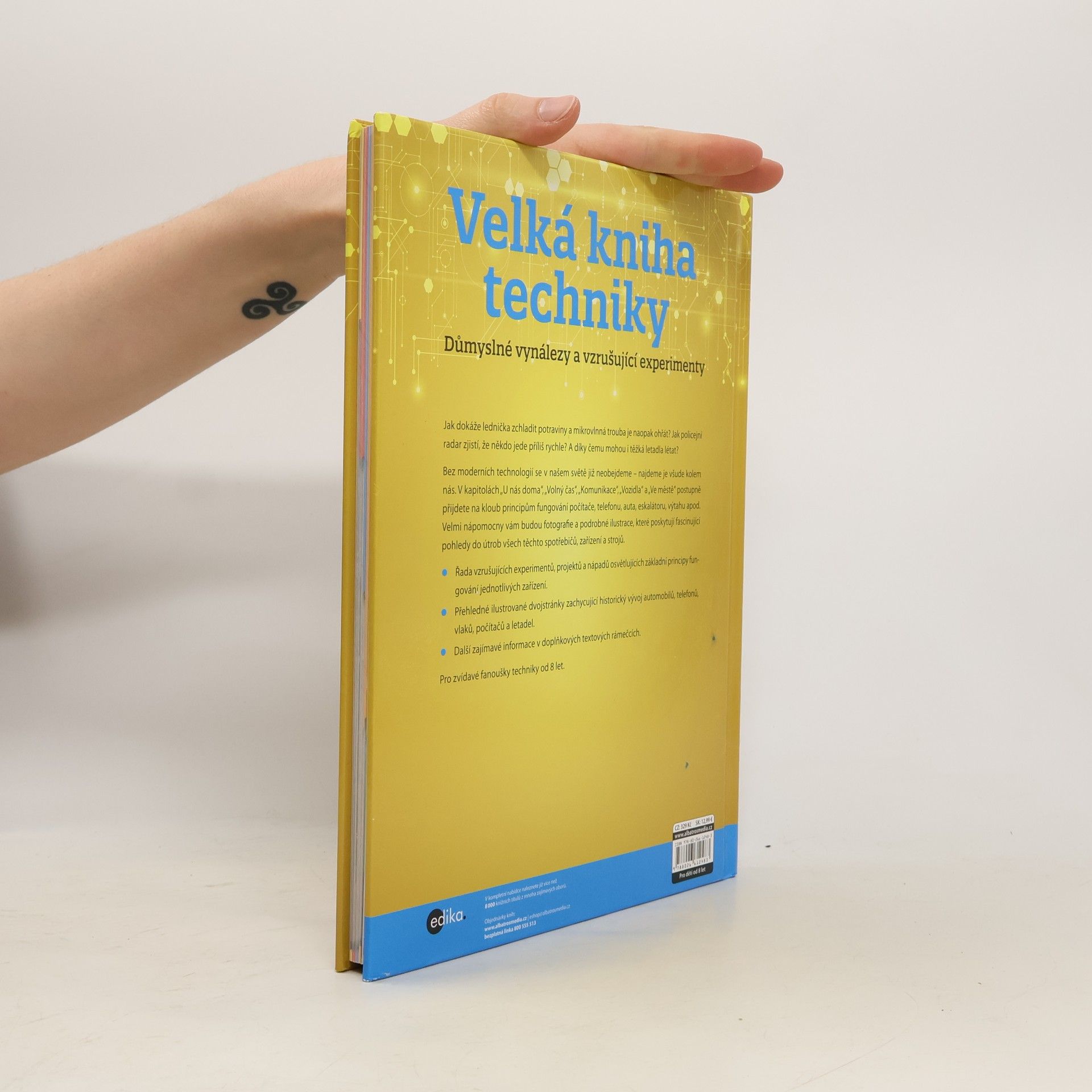 Jak dokáže lednička zchladit potraviny a mikrovlnná trouba je naopak ohřát? Jak policejní radar zjistí, že někdo jede příliš rychle? A díky čemu mohou i těžká letadla létat? Bez moderních technologií se v našem světě již neobejdeme – najdeme je všude kolem nás. V kapitolách „U nás doma“, „Volný čas“, „Komunikace“, „Vozidla“ a „Ve městě“ postupně přijdete na kloub principům fungování počítače, telefonu, auta, eskalátoru, výtahu apod. Velmi nápomocny vám budou fotografie a podrobné ilustrace, které poskytují fascinující pohledy do útrob všech těchto spotřebičů, zařízení a strojů. - Řada vzrušujících experimentů, projektů a nápadů osvětlujících základní principy fungování jednotlivých zařízení. - Přehledné ilustrované dvojstránky zachycující historický vývoj automobilů, telefonů, vlaků, počítačů a letadel. - Další zajímavé informace v doplňkových textových rámečcích. Pro zvídavé fanoušky techniky od 8 let.