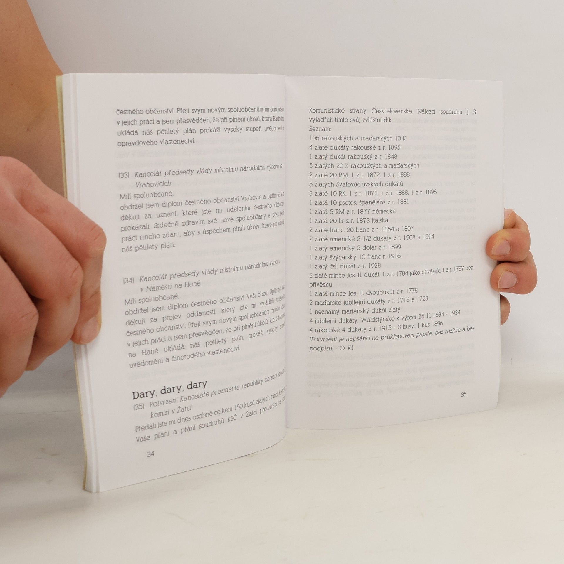 Autor vybral z archivů ÚV KSČ a Kanceláře prezidenta republiky různé zdravice, gratulace, holdy, závazky, oslavné básně, dary, žádosti o kmotrovství, čestné občanství, kádrové materiály, podpisové akce a rezoluce z 50.let adresované Stalinovi, Gottwaldovi, Zápotockému a Husákovi a eventuální odpovědi prezidentské kanceláře. Všechny texty ponechal v jejich autentické podobě včetně pravopisných a stylistických chyb.